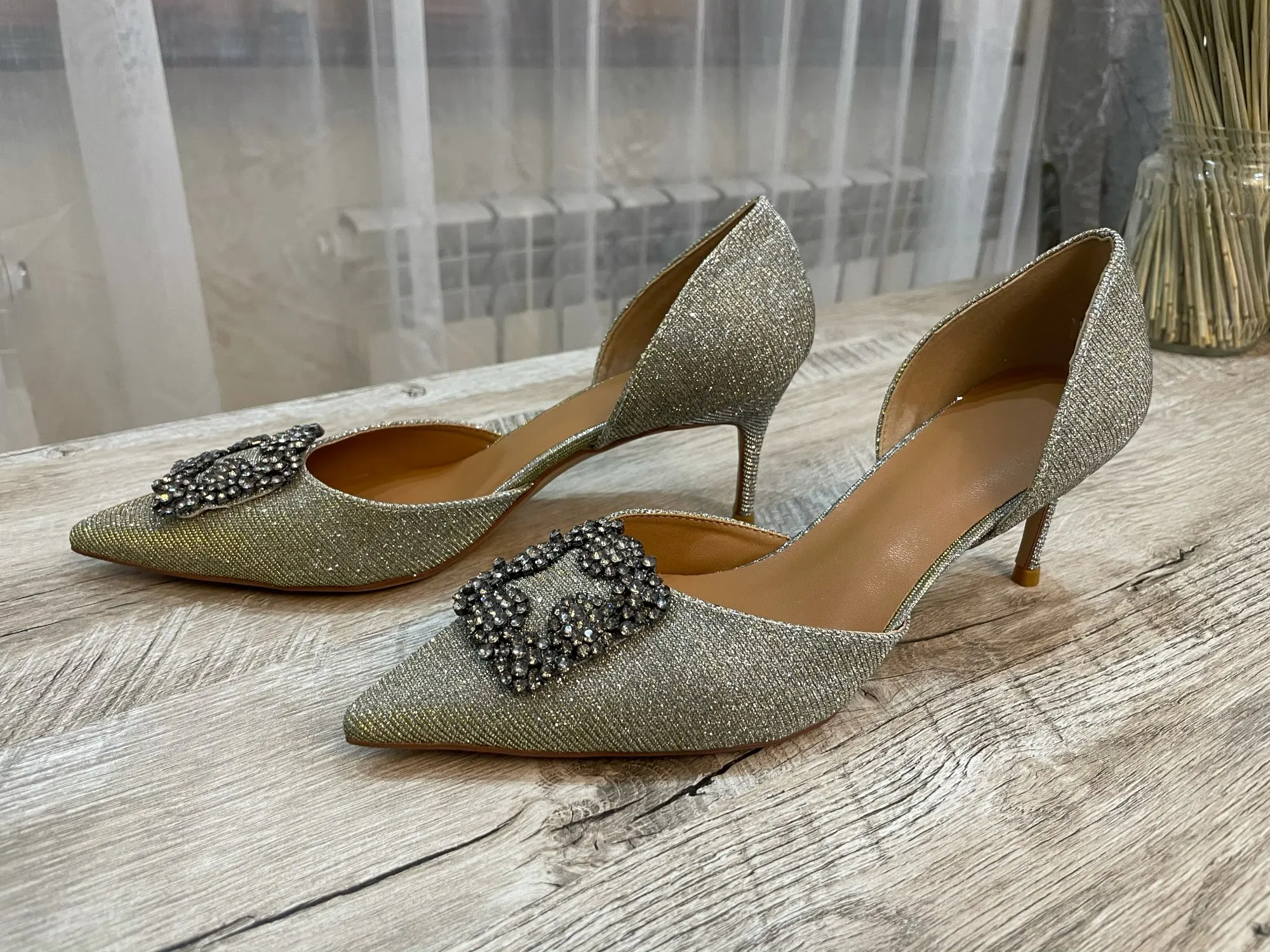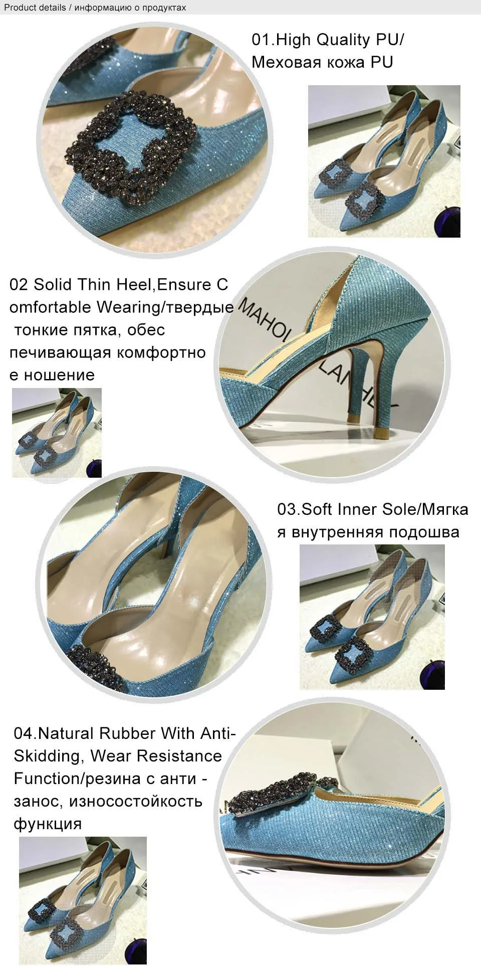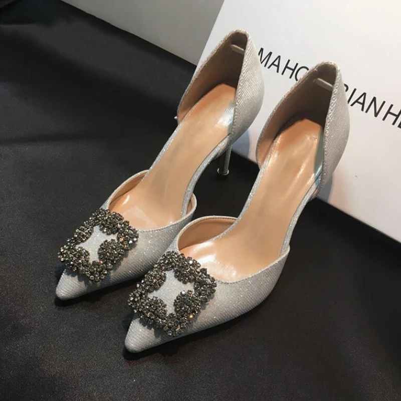 Новинка 2020, свадебные туфли с острым носком на высоком тонком каблуке, с закрытым носком и кристаллами, туфли с квадратной пряжкой, модные туфли, Прямая поставка