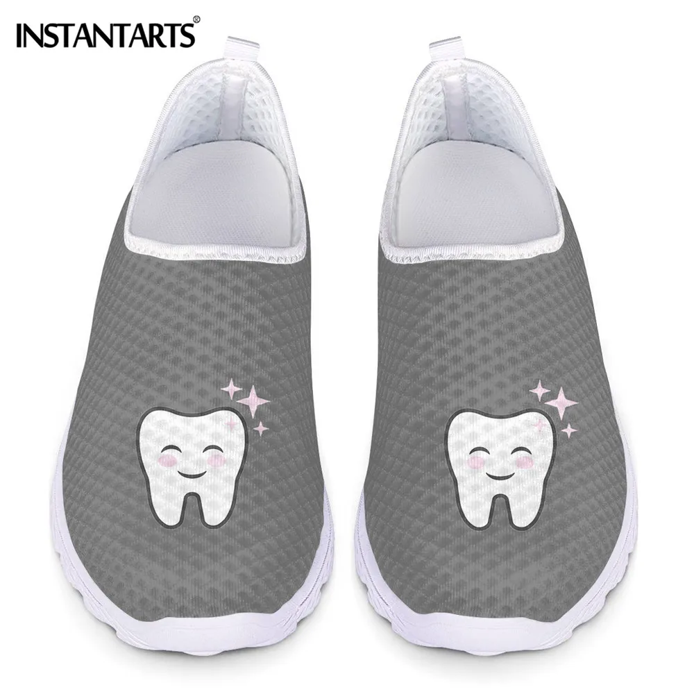 Женские сетчатые кроссовки INSTANTARTS, милые туфли на плоской подошве с мультяшным рисунком зубов, модные дизайнерские Слипоны для дантиста, Летние повседневные лоферы