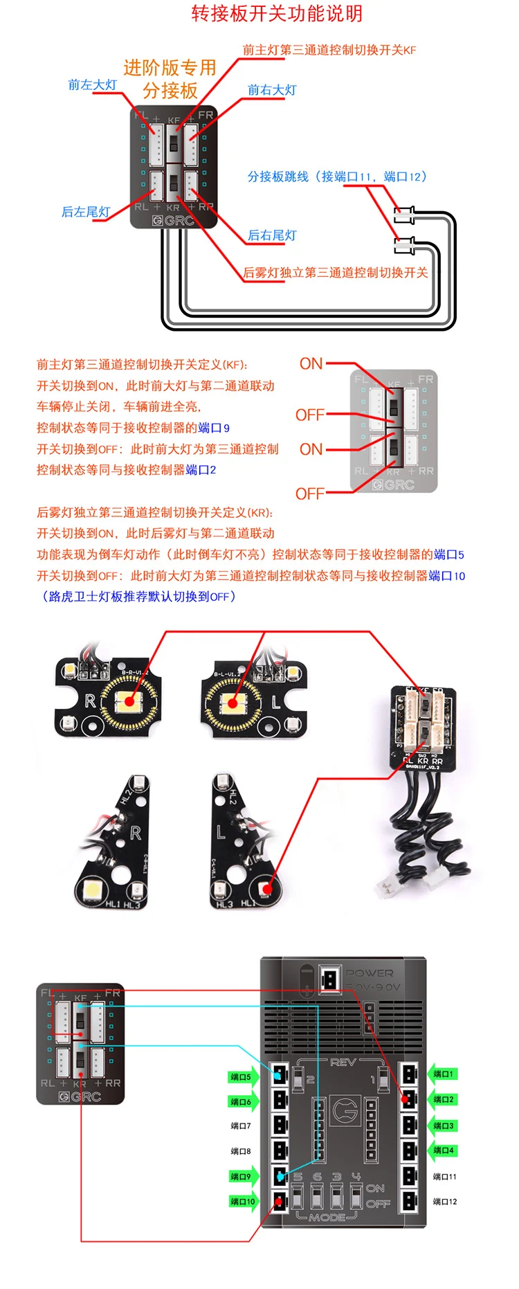 GRC беспроводной 4-канальный SMD светильник, беспроводная связь светильник группы, используется для 1/10 RC Гусеничный автомобиль traxxas trx4 defender