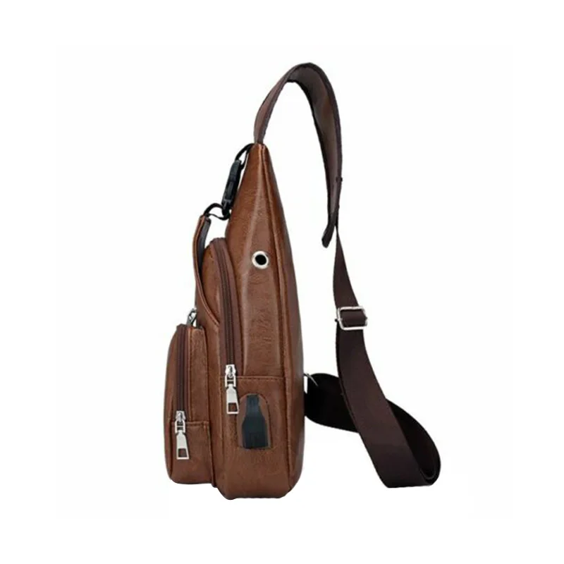 Мужская нагрудная сумка с USB-зарядкой, кожаная слинг-сумка на плеч...