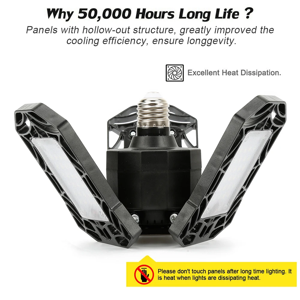 -Деформируемый потолочный светильник-светодиодное освещение гаража светильник ing с уникальным регулируемым широкоугольным дизайном, каждое крыло 90 градусов регулируемый, который может иметь идеальный гараж светильник ing распределения кривой в соответствии с вашим приложением, это позволит покрыть светильник на 360 ° площади. Просто идеально подходит для гаража, мастерской, склада, подвала, автомагазинов, офисных автомобилей, торговой почты, мастерской, где угодно нужен яркий светильник.