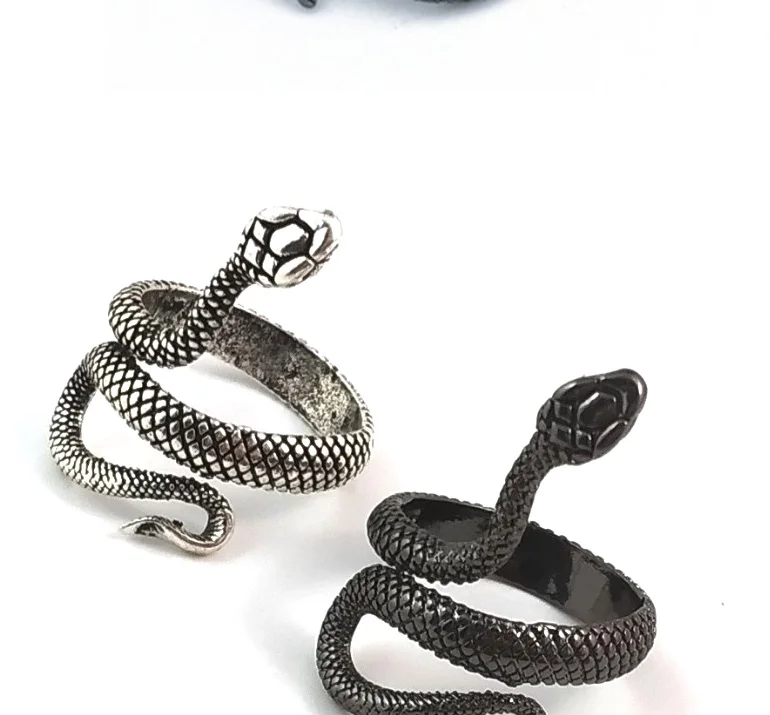 Женское Винтажное кольцо в стиле панк, регулируемое кольцо со змеей, в европейском стиле