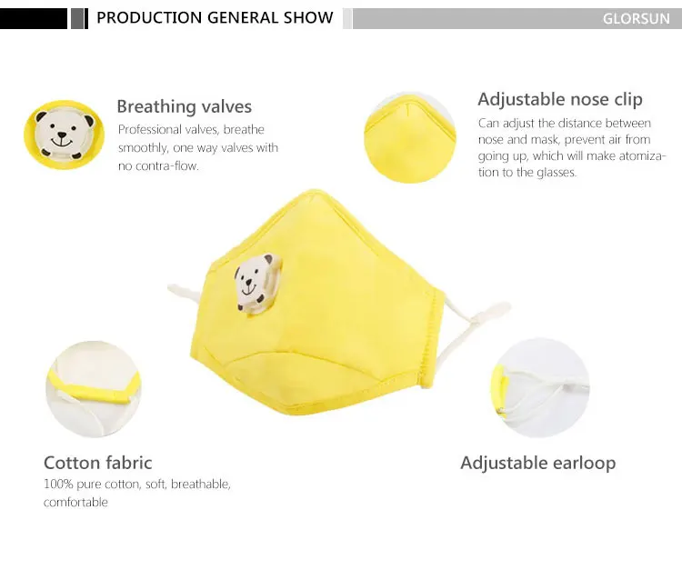 GLORSUN мультяшная детская маска для детей от 3 до 10 лет PM2.5 хло...