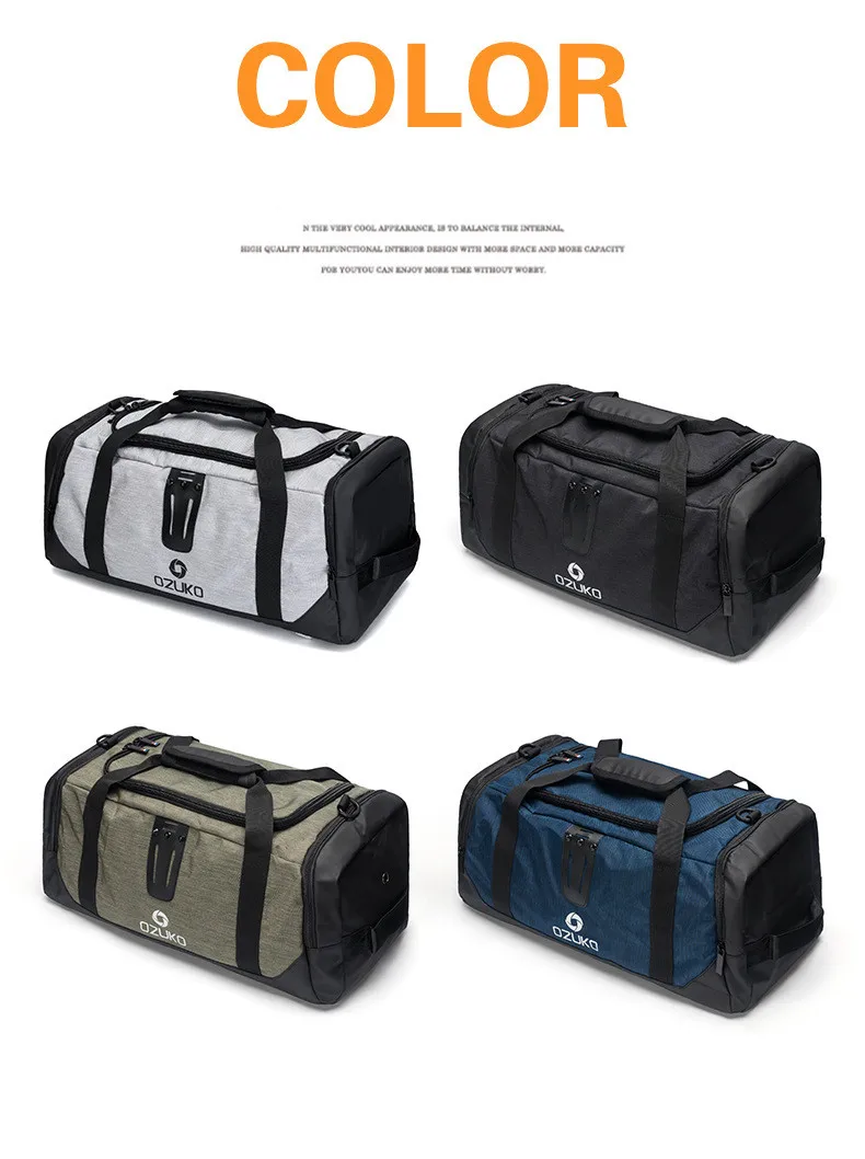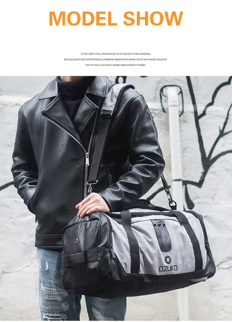 Многофункциональная дорожная сумка OZUKO для мужчин, вместительный водонепроницаемый спортивный мешок для хранения одежды в поездках, чемодан для ручной клади с чехлом для обуви