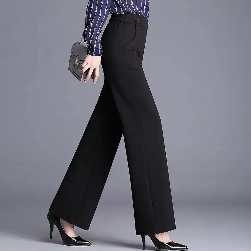 Брюки женские с широкими штанинами, свободные приталенные штаны с завышенной талией, в Корейском стиле, универсальные, весна-осень