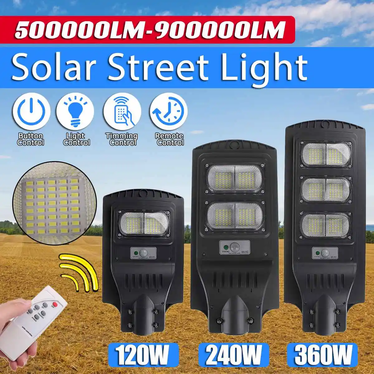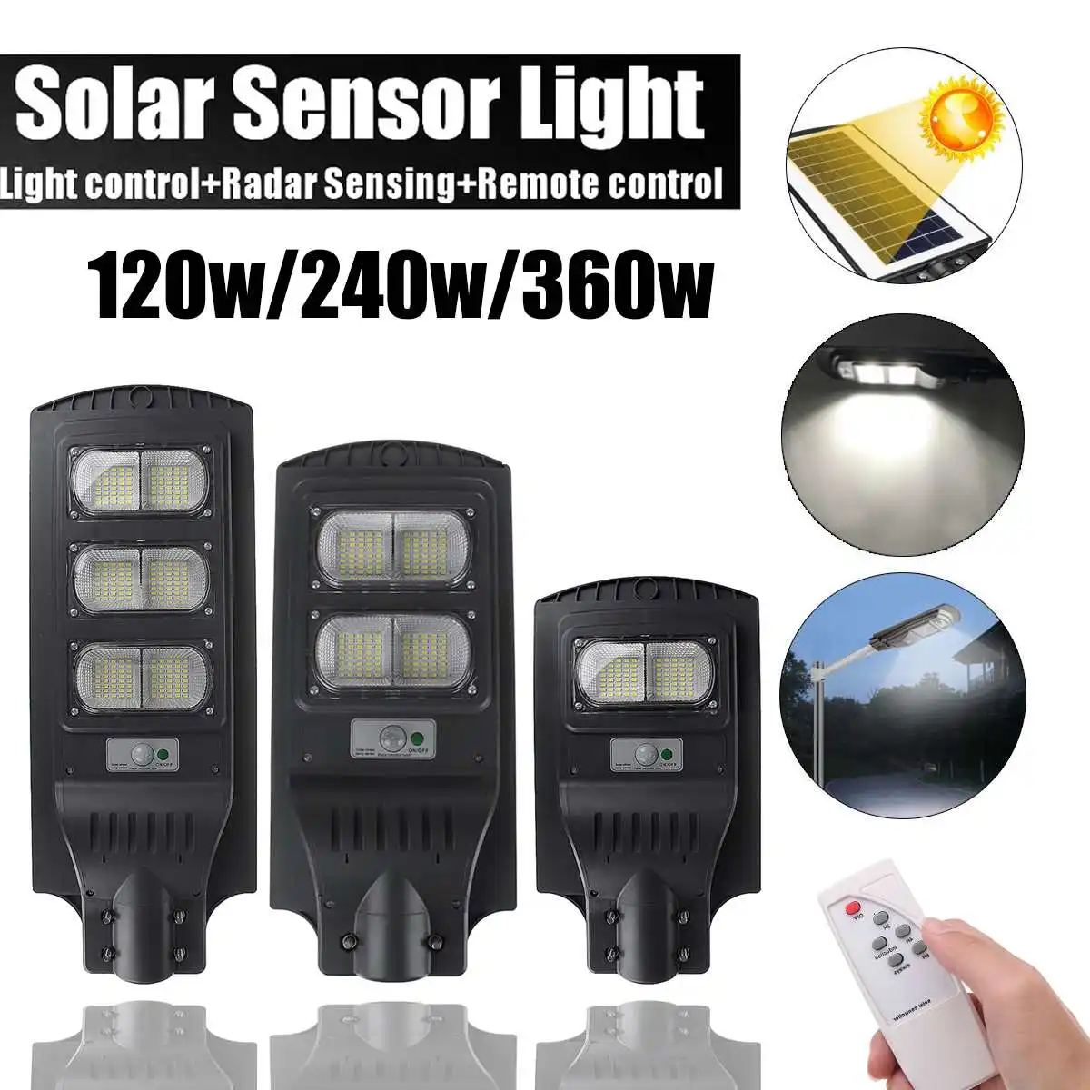 120240360 Вт Светодиодный уличный фонарь на солнечной батарее настенные садовые фонари Водонепроницаемый наружное освещение с пультом дистанционного управления от заката до рассвета движения PIR Сенсор