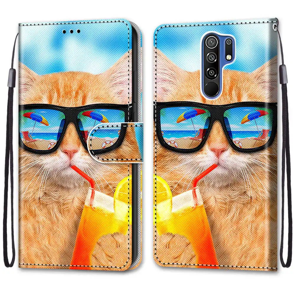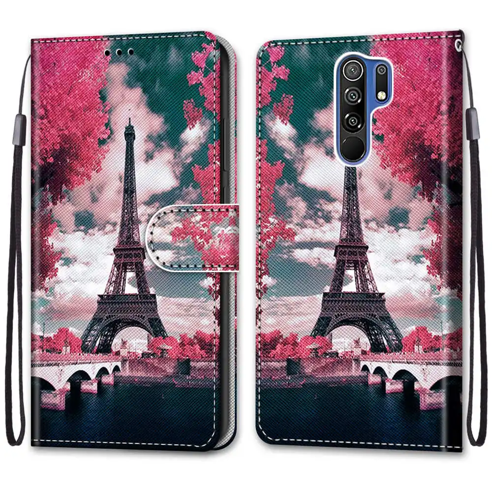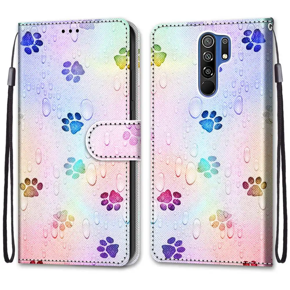 Чехол для Xiaomi Redmi 9, чехол с откидной крышкой для телефона, чехол для девочек и мальчиков с цветочным рисунком, для Redmi 9, защитный кожаный чехол-бумажник с подставкой и отделением для карт