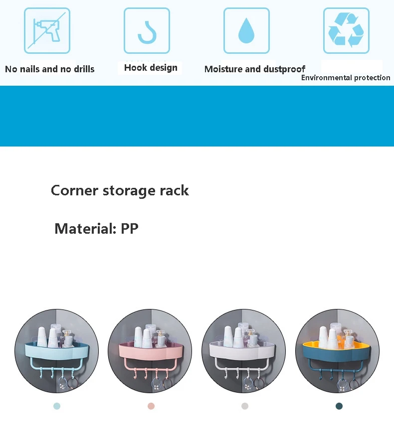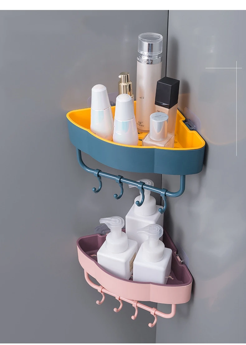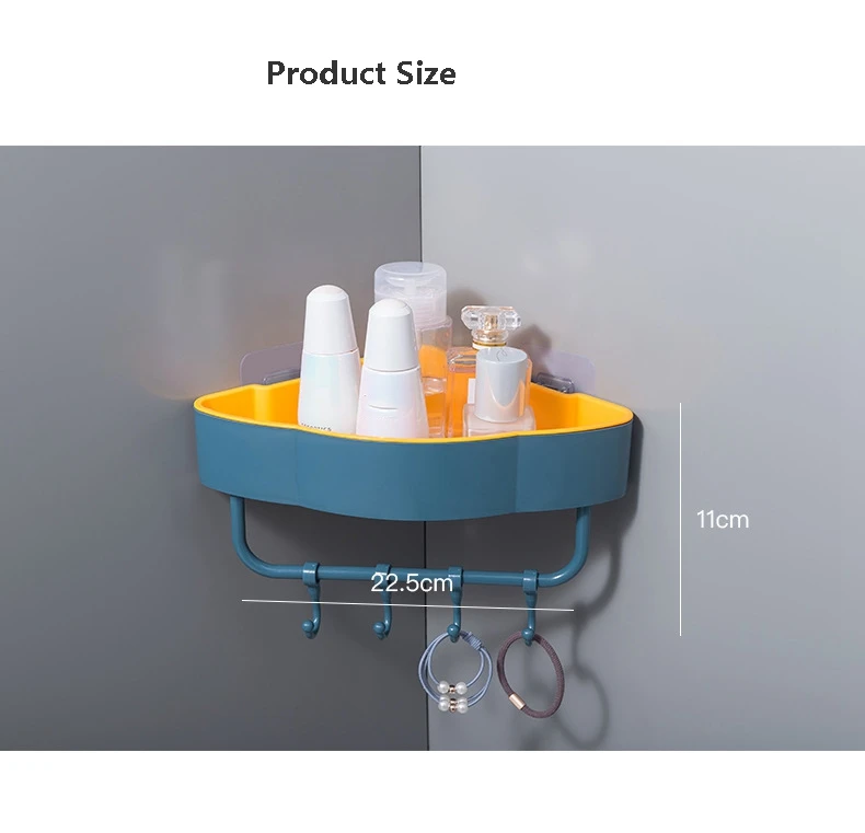 Угловая полка для ванной комнаты с крючками, аксессуары для ванной комнаты, рама для шампуня, душа, кухонные аксессуары, настенное хранилище