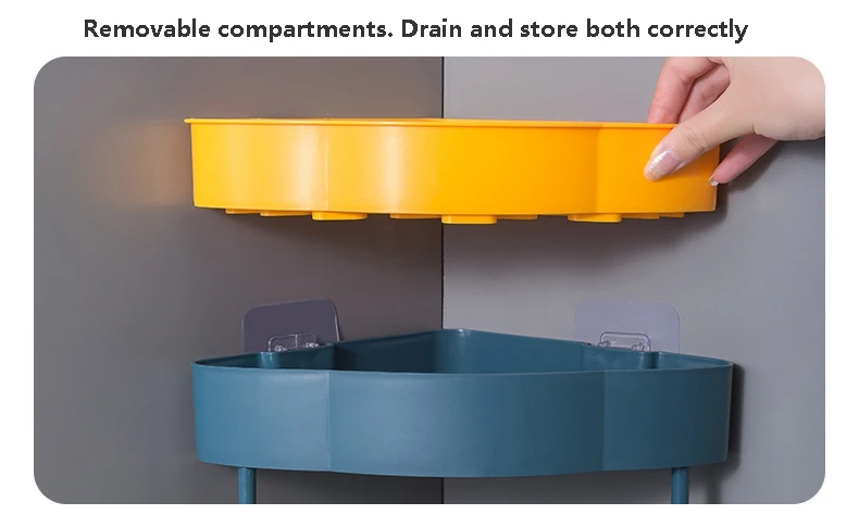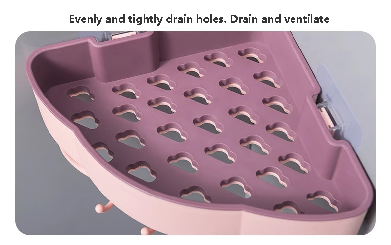 Материалы для защиты окружающей среды Угловая Рама изготовлена из экологически чистой, прочный материал ПП, нетоксичной, безопасной и безвкусной. Функция фильтрации воды На полке имеется конструкция полая лента, которая может быстро слить воду и предотвратить рост бактерий. Большая грузоподъемность Так что ваши принадлежности для душа (например, шампунь, мыло, чашки) можно легко разместить на полке. Он имеет конструкцию крючка, так что вы можете повесить вещи. Легко устанавливается. Без перфорации