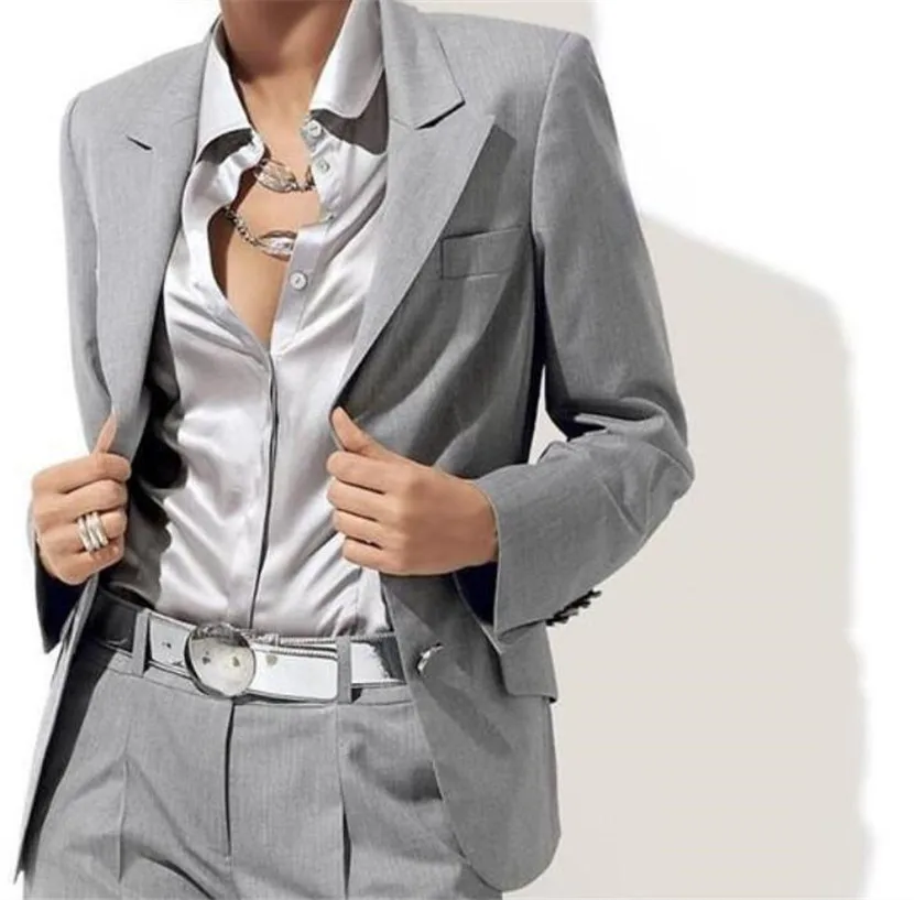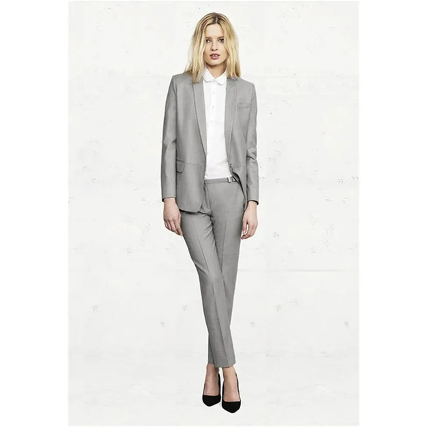 Женские костюмы, брюки, жакет и брюки светильник-серый костюм, Официальный деловой женский индивидуальный костюм