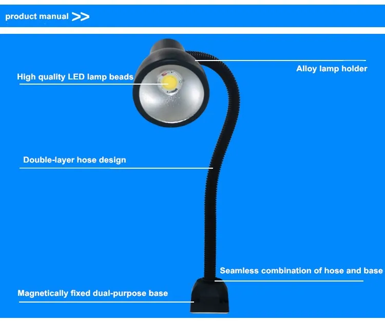 Светодиодная лампа для станка, взрывозащищенный токарный станок с ЧПУ, сверлильный станок, фрезерный станок 24 В220 В 12 Вт, гибкий металлический шланг