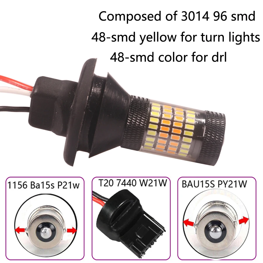 Светодиодные лампы NHAUTP T20 W21W, двухцветные лампы 1156 для указателей поворота Canbus, без ошибок, 2 шт.