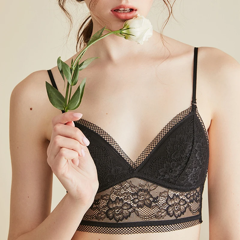 Сексуальный кружевной бюстгальтер с цветочным рисунком, бюстгальтер без косточек, бесшовный бюстгальтер без косточек, Прозрачные чашечки, беспроводные бюстгальтеры, нижнее белье