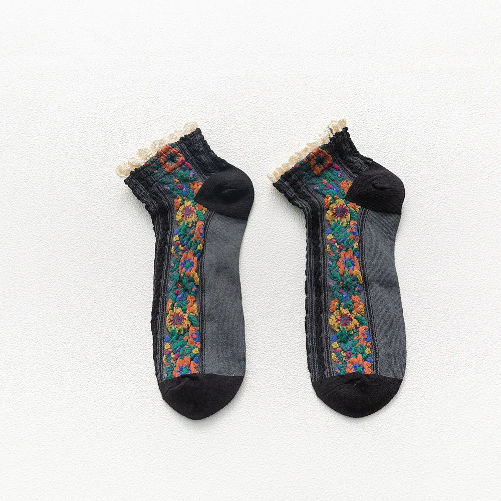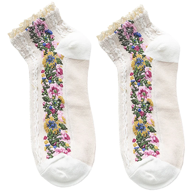 Кружевные носки с оборками и цветочным принтом; harajuku; kawaii calcetines; Женские носки; meias mulher skarpetki damskie calcettas mujer; Милые носки; happy