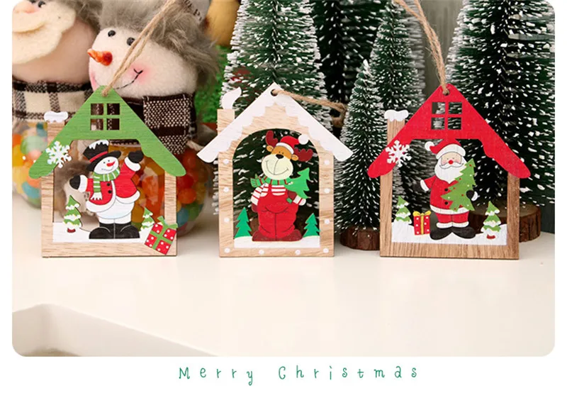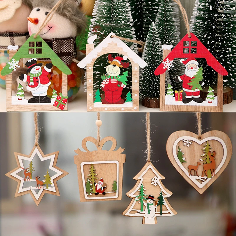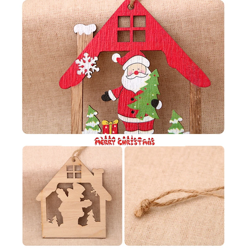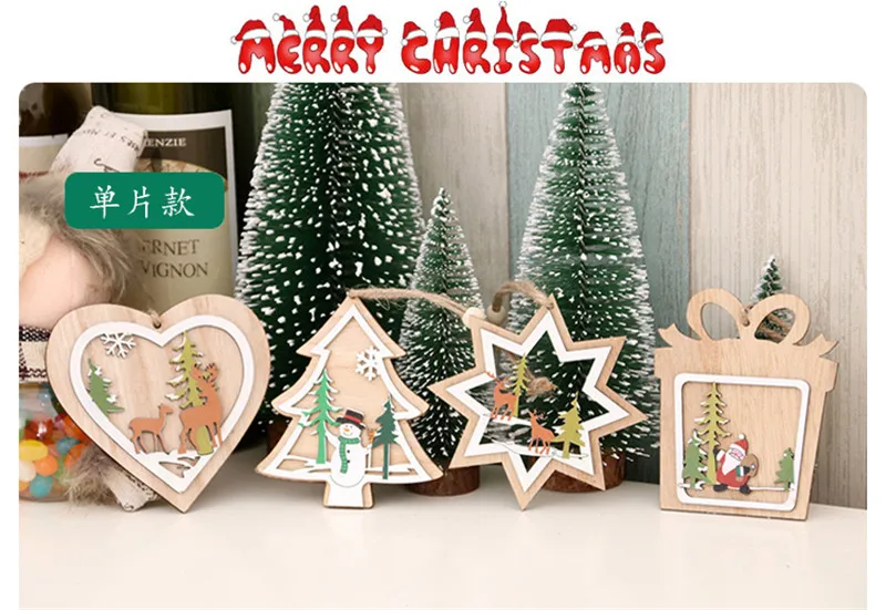 1 шт. Рождественская деревянная елка, украшение сделай сам, деревянный кулон, Санта-Клаус, лось, снеговик, искусственное украшение для дома