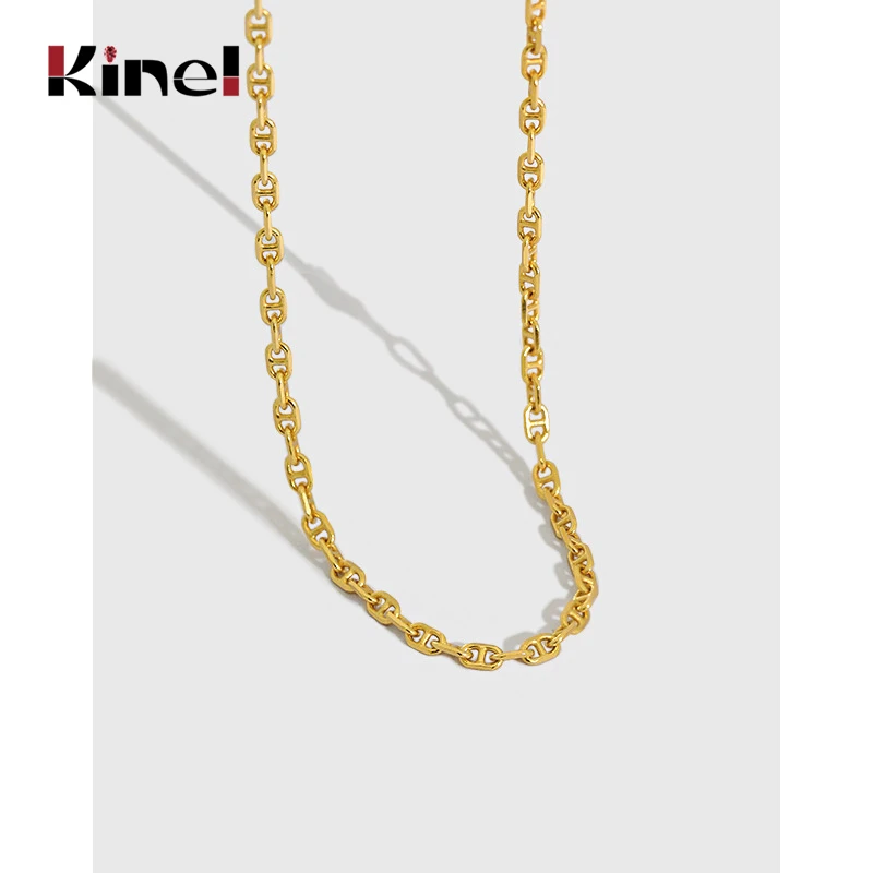 Ожерелья-цепочки Kinel из настоящего золота 18 карат, минималистичные ожерелья в Корейском стиле INS для женщин, ожерелье, Повседневная бижутерия, новинка 2020