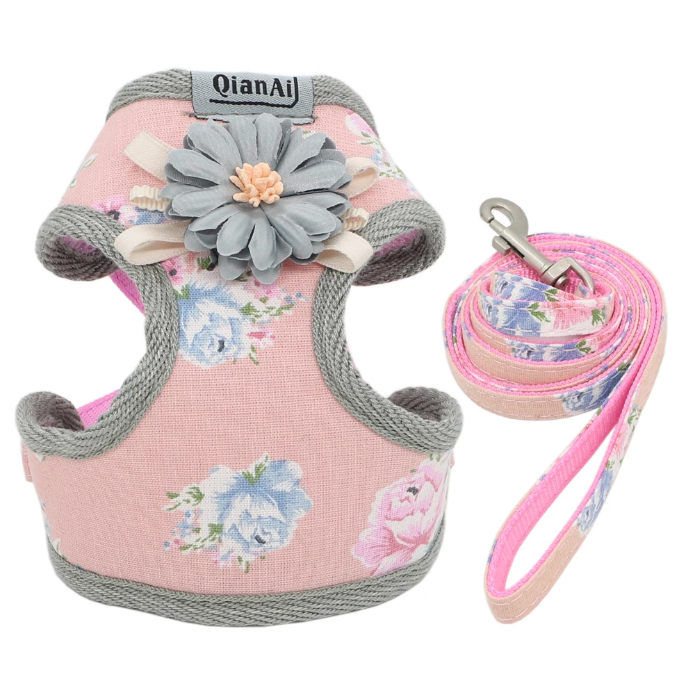 Комплект из поводка и жилета с цветочным принтом для маленьких и средних собак