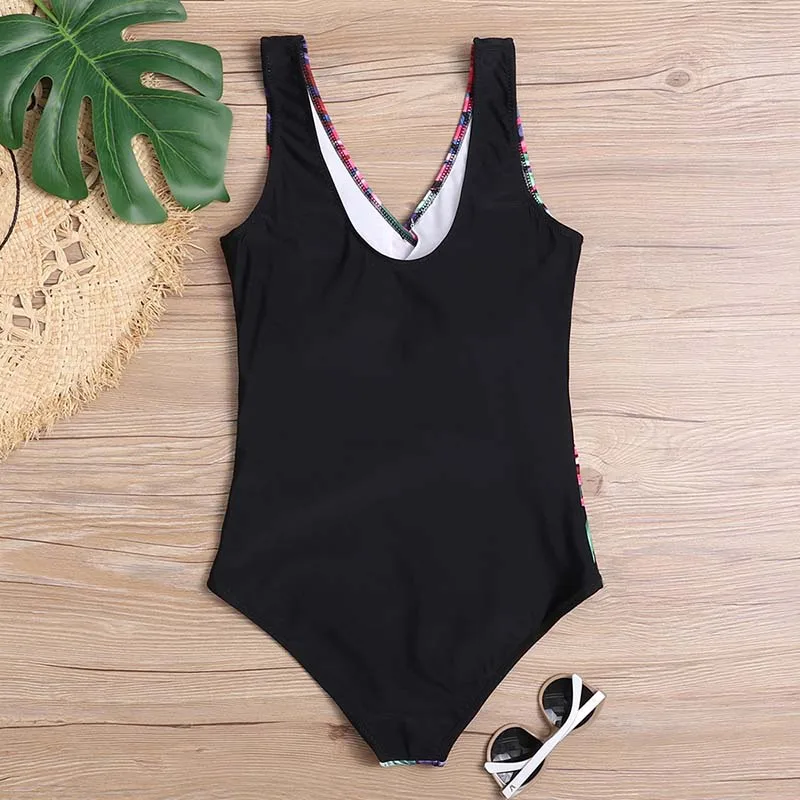 Летний сексуальный слитный купальник с черным принтом, закрытый жен...