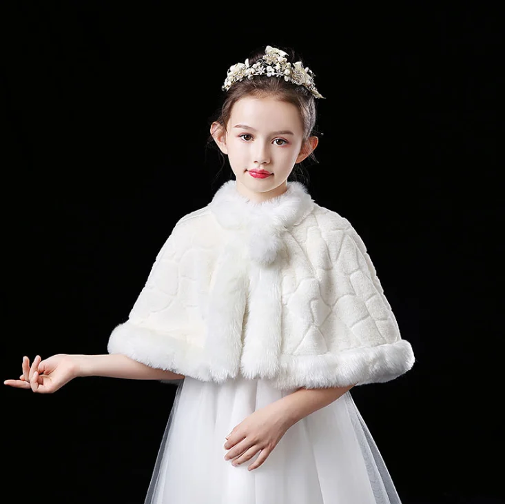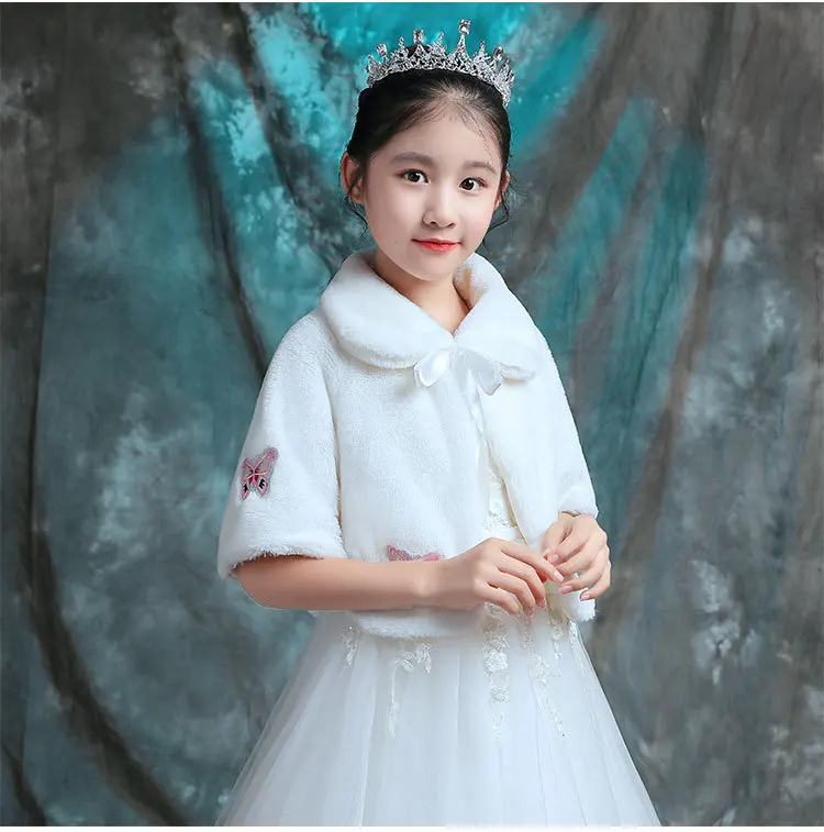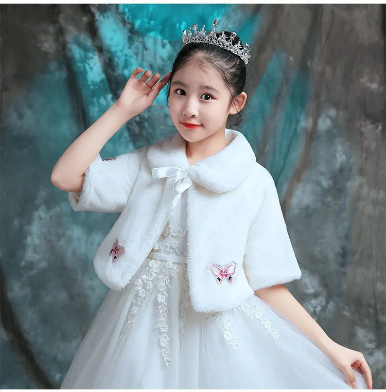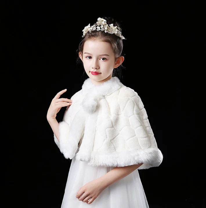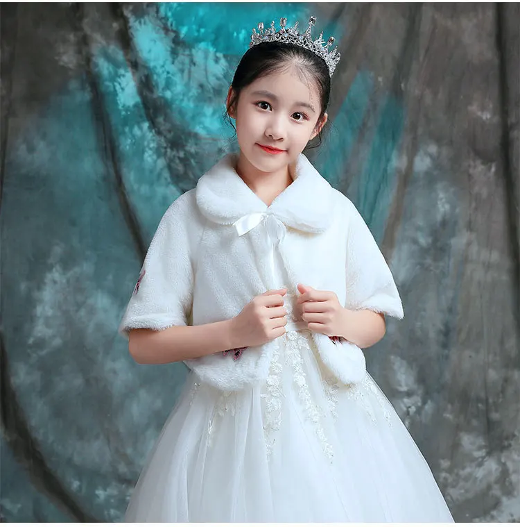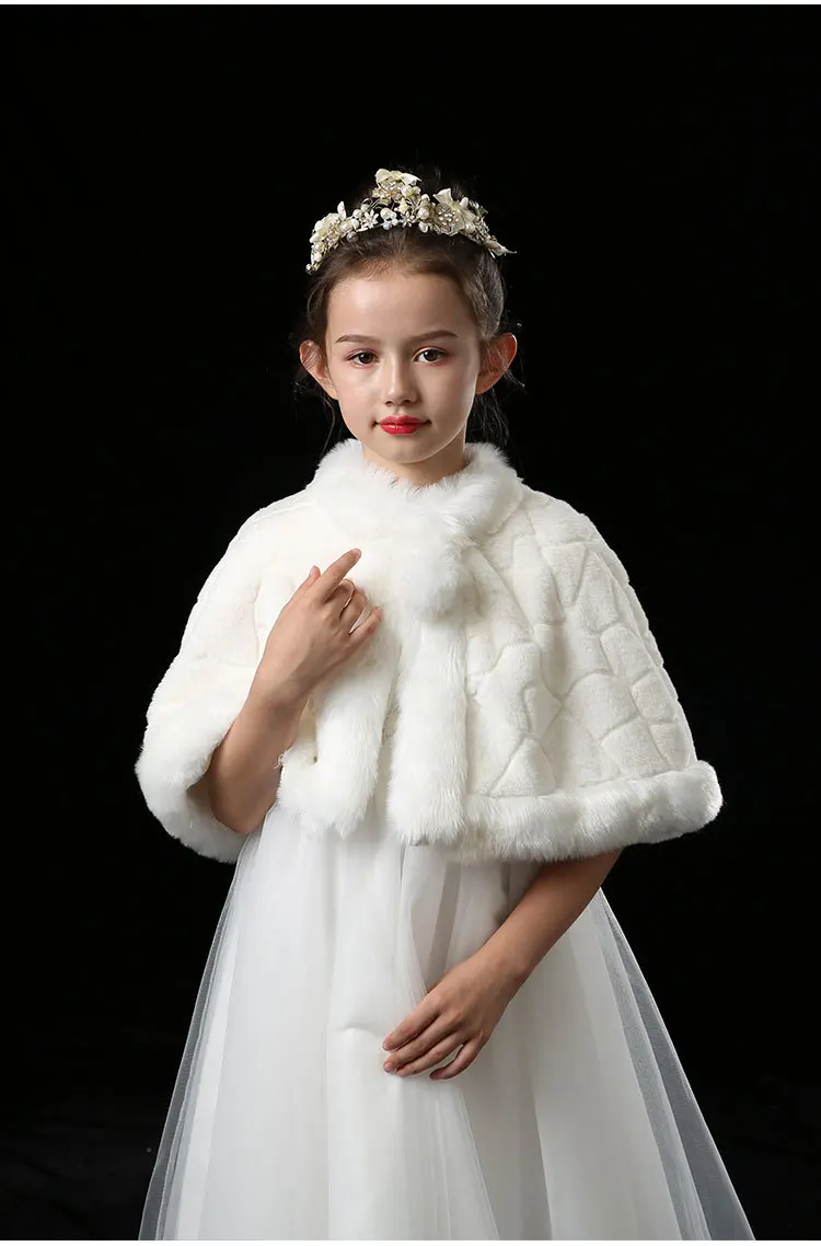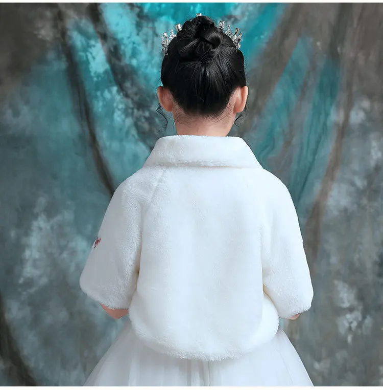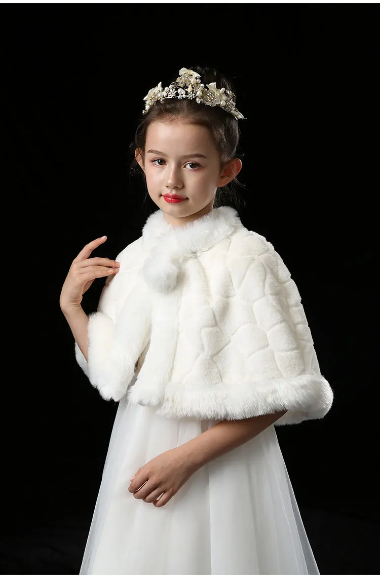 От 2 до 12 лет Детская куртка с искусственным мехом для свадебной вечеринки белая накидка-накидка цвета слоновой кости, накидка-Болеро для девочек, детское зимнее теплое пальто