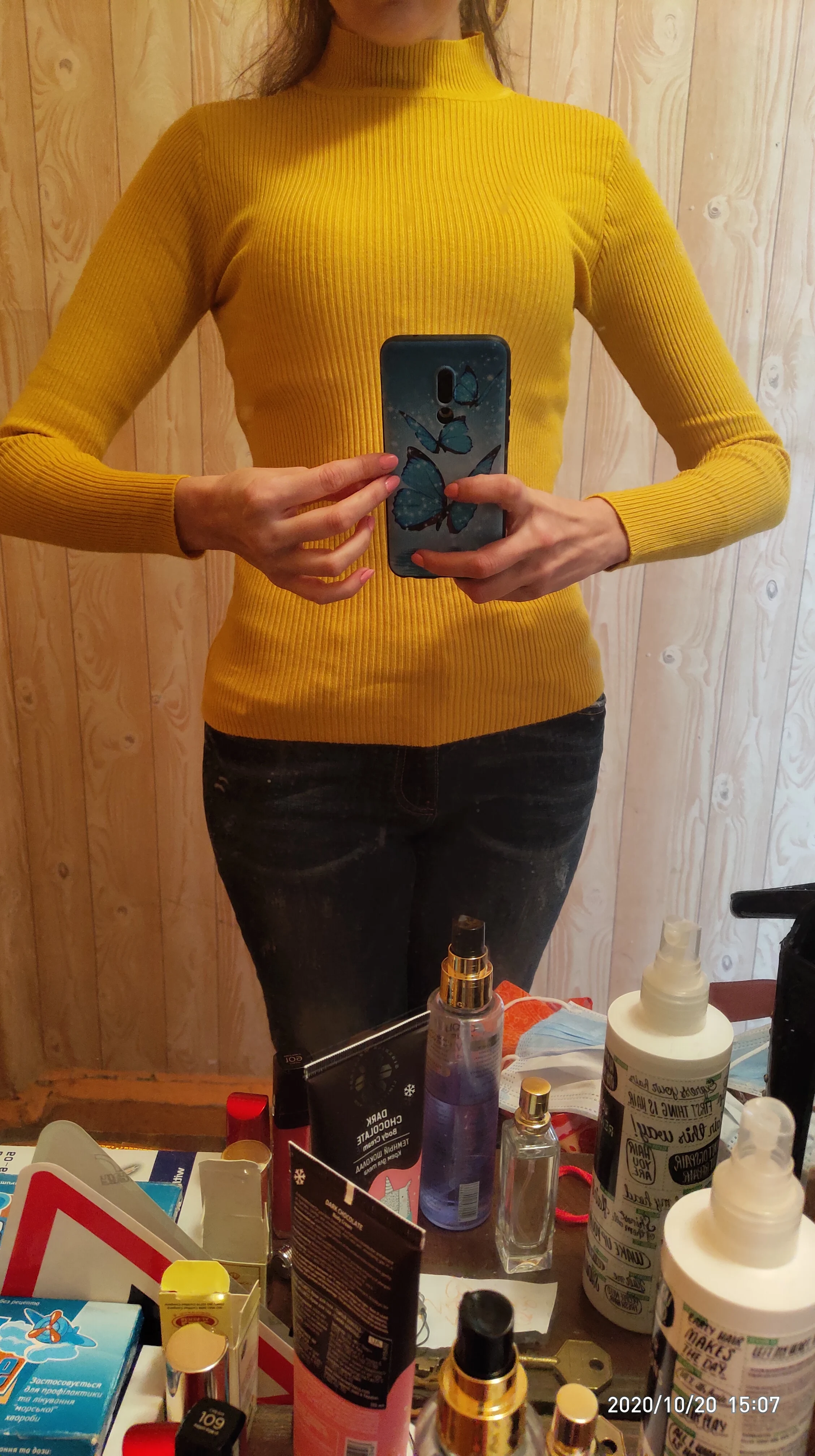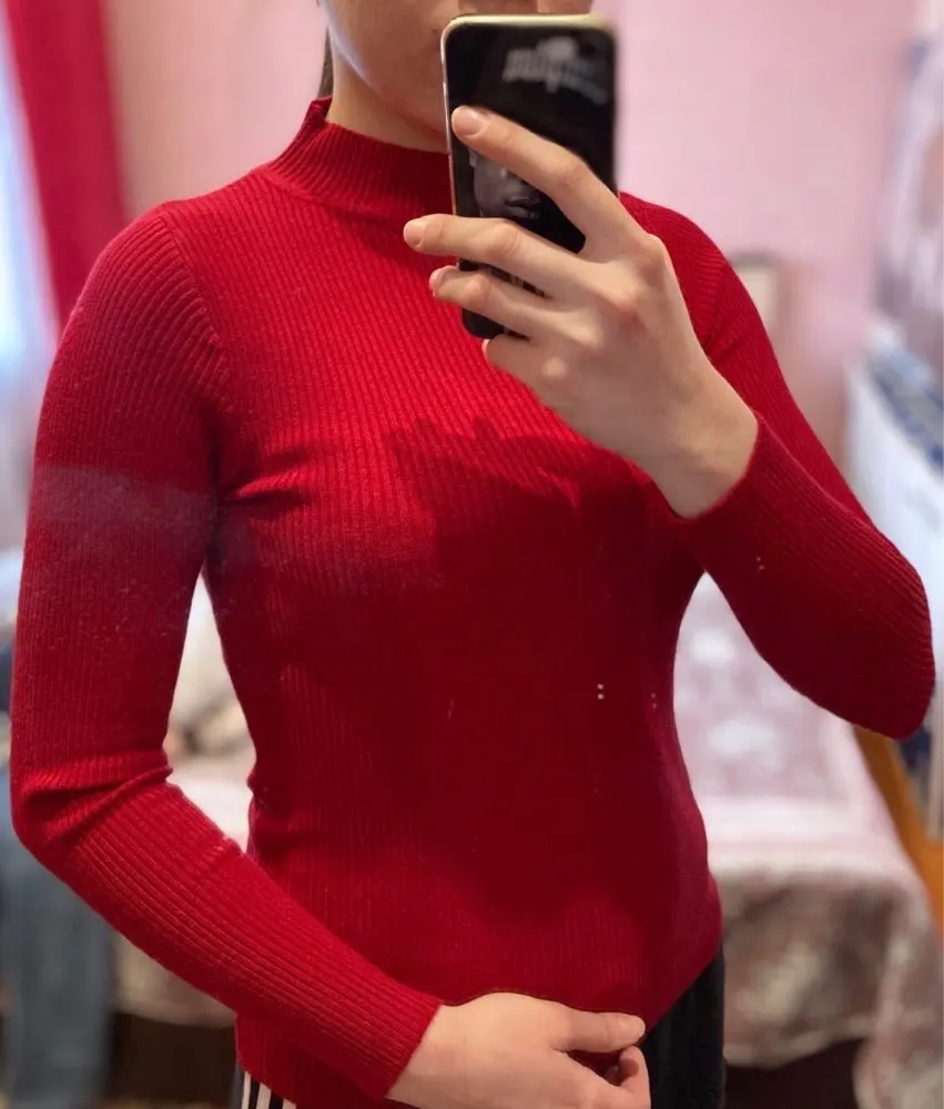 Я очень довольна товаром! Все в этом гольфике идеально: и цена, и качество, и цвет! Все как я и хотела. Ниток и дырок нет, свитер приятный к телу. Хорошо тянется. На параметры ОГ-94, ОТ-73 сел отлично. И пришла посылка довольно быстро - спустя 16 дней после заказа. Так же продавец положил в подарок резиночку для волос, что не может не радовать. В общем, товар рекомендую! Продавцу огромное спасибо)