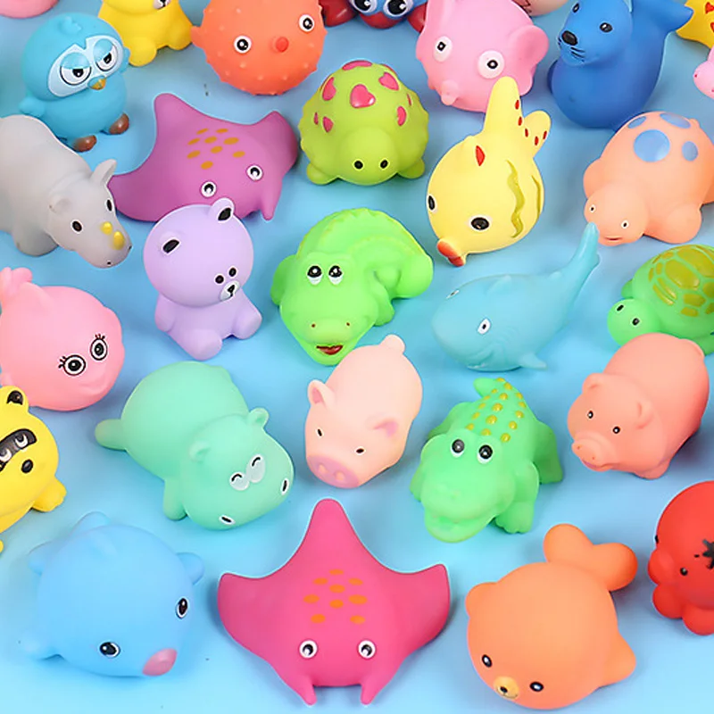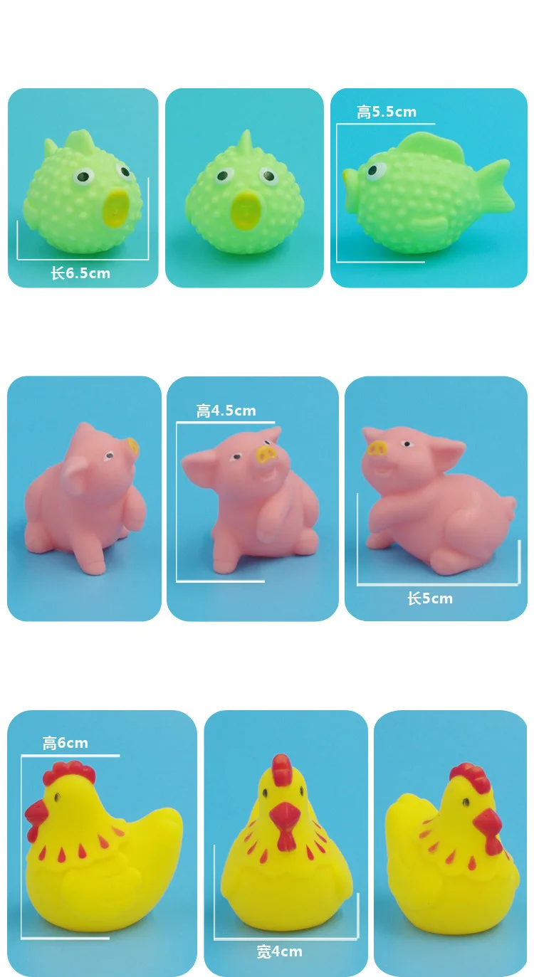 10, шт.упак., милые животные, Игрушки для ванны, красочные, мягкие, резиновые, поплавок, звук сжимания, игрушки для плавания, для детей, с сетчатой сумкой