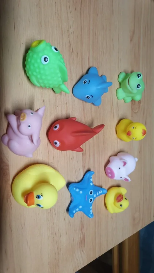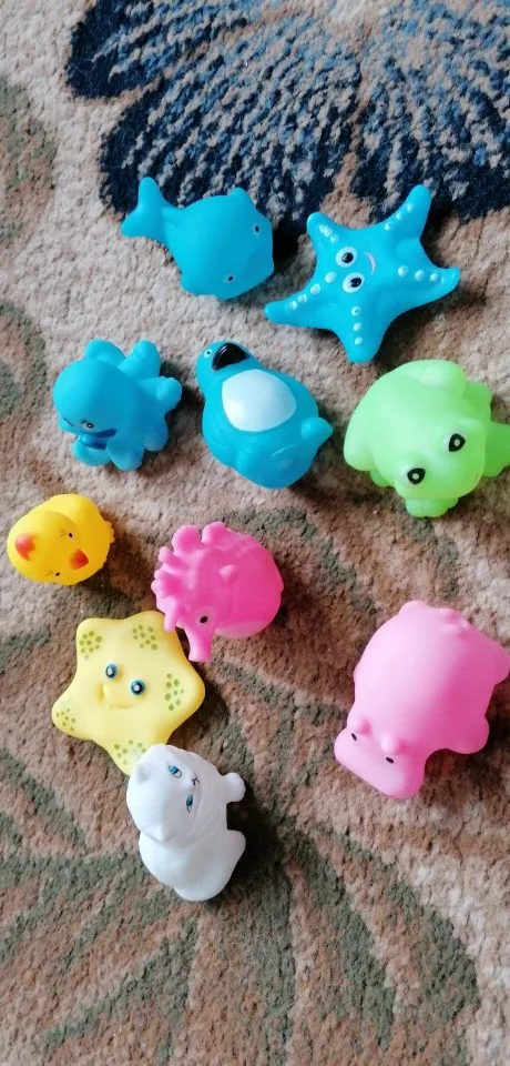 маленькие, пищащие игрушки для ванной в наборе морские животные. очень красивые и приятные нам понравились. спасибо продавцу.