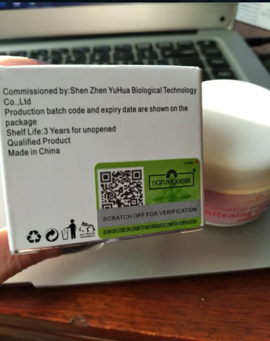 Доставка в Новую Зеландию занимает 1 месяц. Хорошо упаковывается в полистирол и пузырчатую пленку. Однако пластиковое уплотнение под крышкой вырывает некоторые продукты. Приятный Цветочный Запах-как у потпурри. Крем имеет белый порошок в нем, который оставляет белый литой на вашей коже. Я просмотрю через 1 месяц, чтобы узнать, является ли отбеливание постоянным. Примерил его на левом колене в качестве примера.