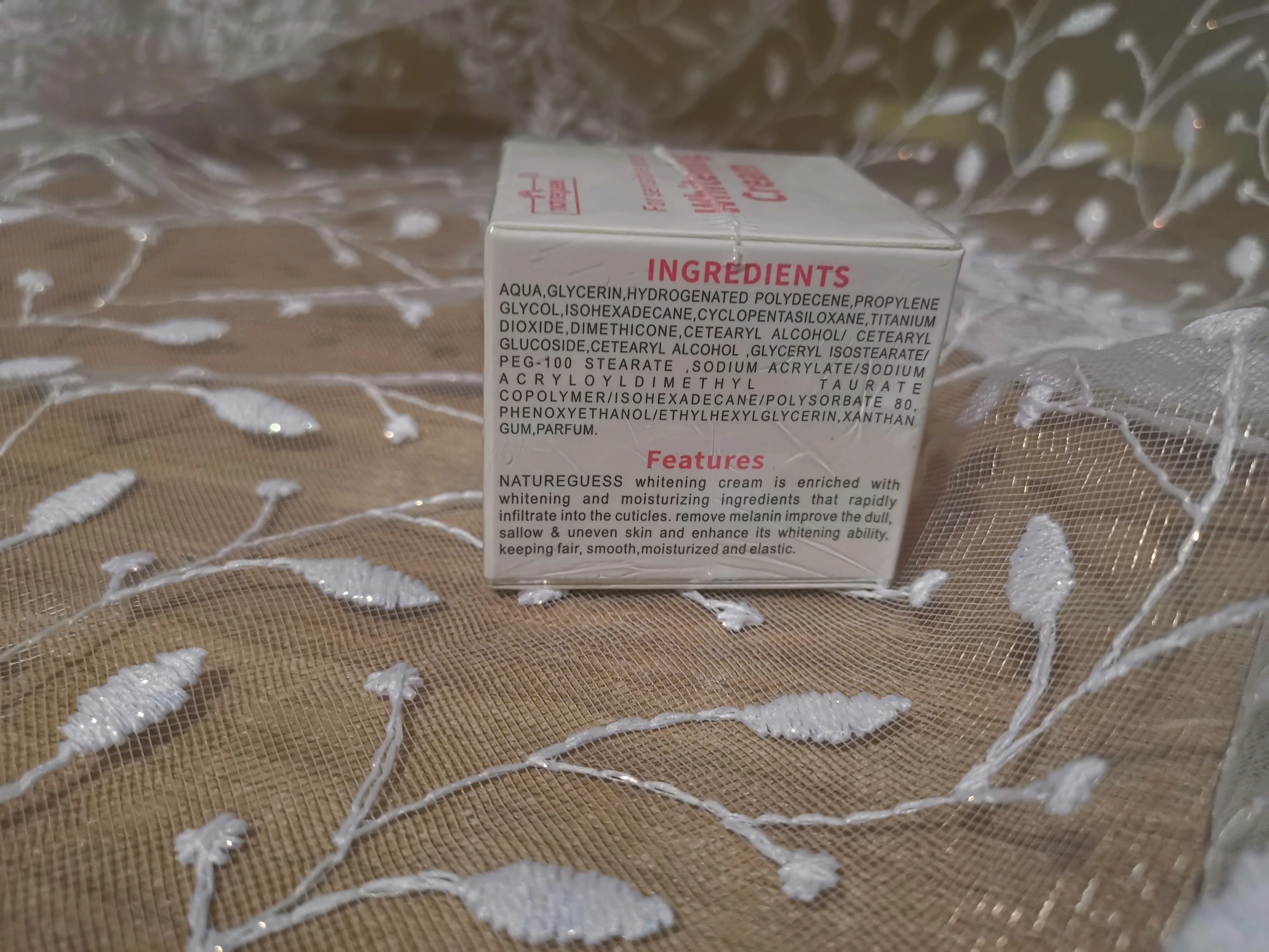 Крем пришёл достаточно быстро, был хорошо упакован, при транспортировке не повредился, не пролился. Пластиковая баночка объёмом 50 мл была упакована в картонную коробочку, запаянную слюдой. Производитель заявляет, что крем обладает моментальным отбеливающим эффектом, увлажняет кожу, делая ее сияющей, гладкой, эластичной и шелковистой. В состав крема входит витамин С, алоэ, никотинамид, молоко. Крем действительно хорошо отбеливает кожу, но эффект не долговременный, до первого принятия душа. Крем белого цвета, обладает лёгкой текстурой, быстро впитывается, не липкий, не жирный, обладает приятным цветочным запахом. Аллергических реакций не вызвал. Подходит для всех типов кожи. Срок годности долгий, до ноября 2023 года. Свежий, изготовлен в ноябре 2020 года. В подарок к заказу продавец положил красиво упакованную салфеточку. Мелочь, а приятно.