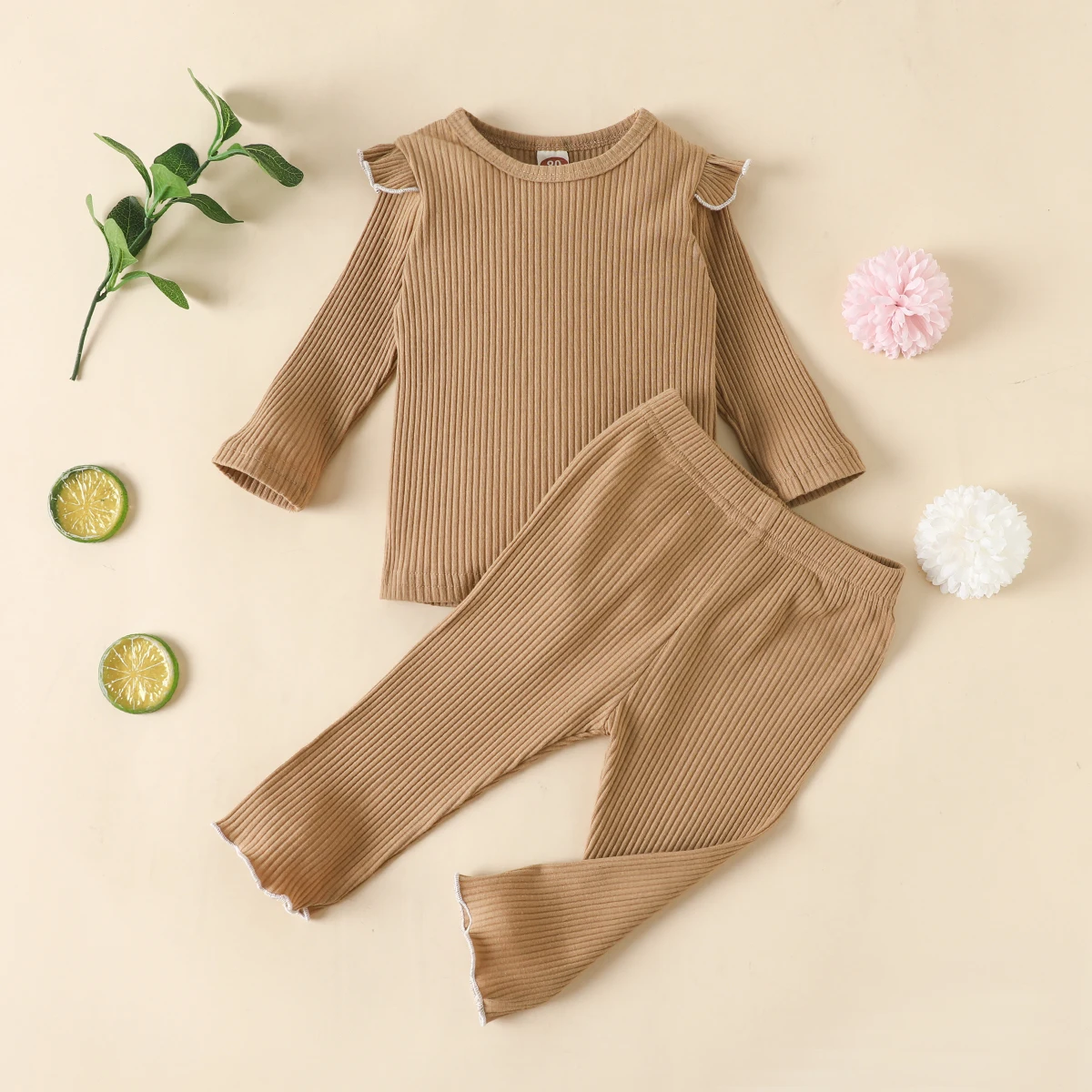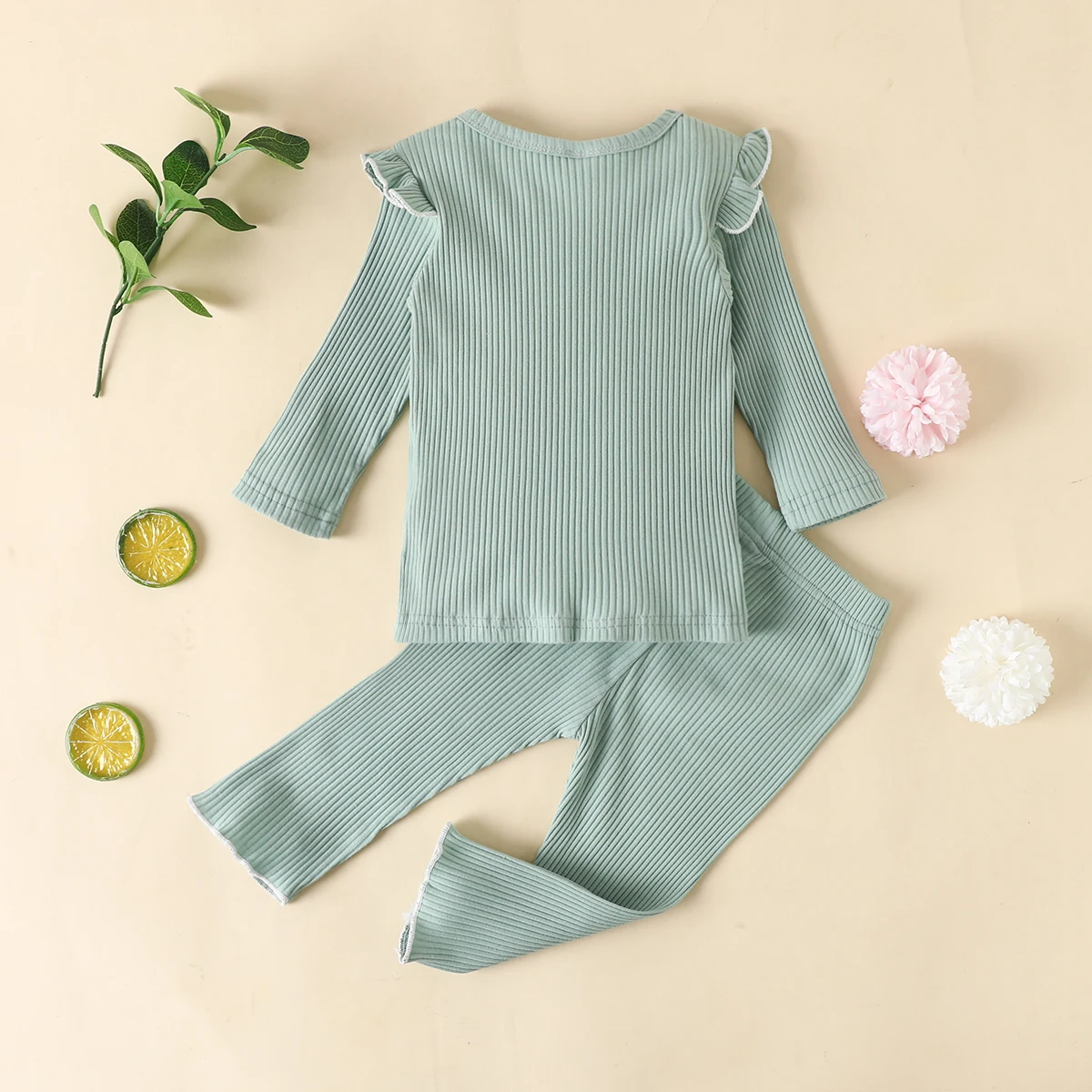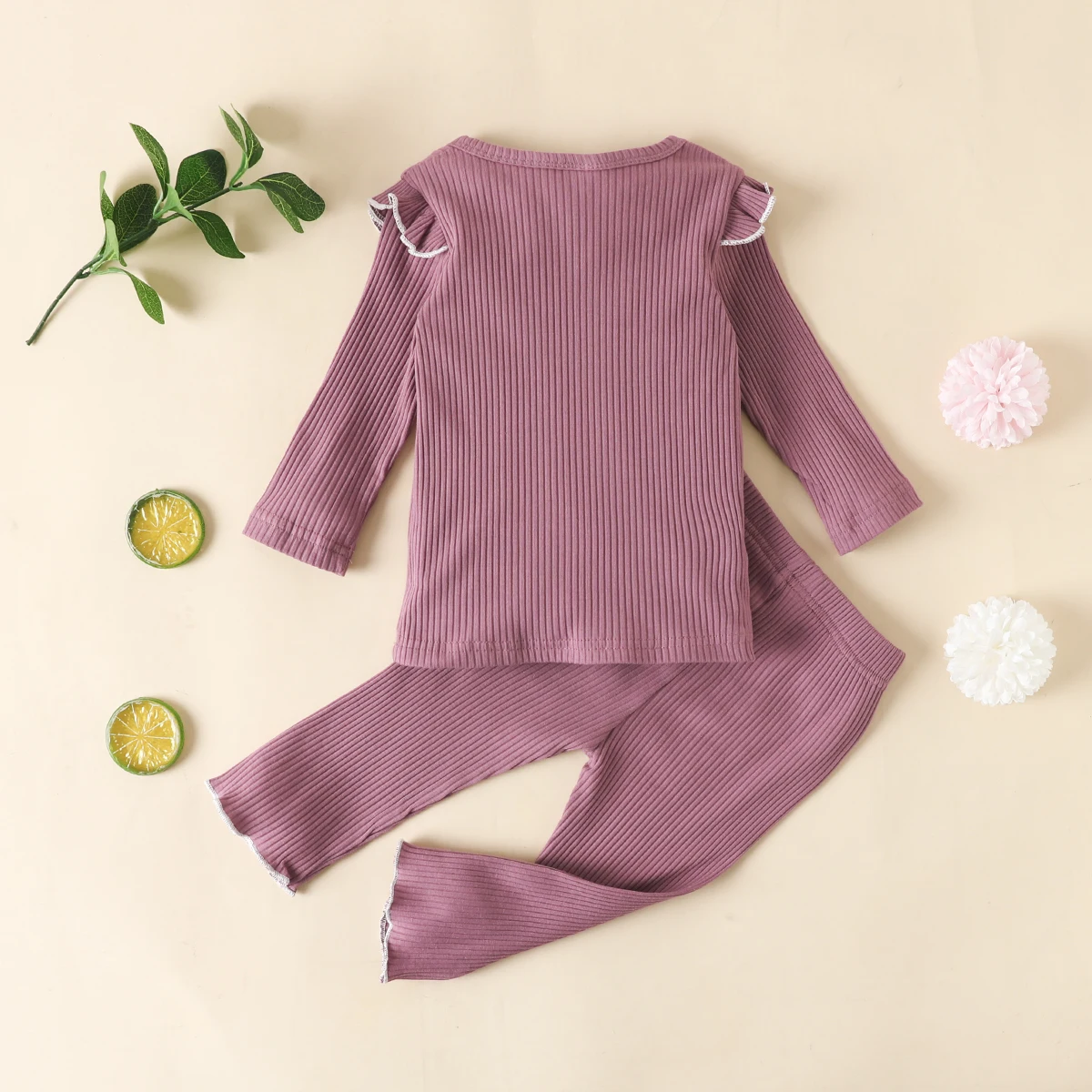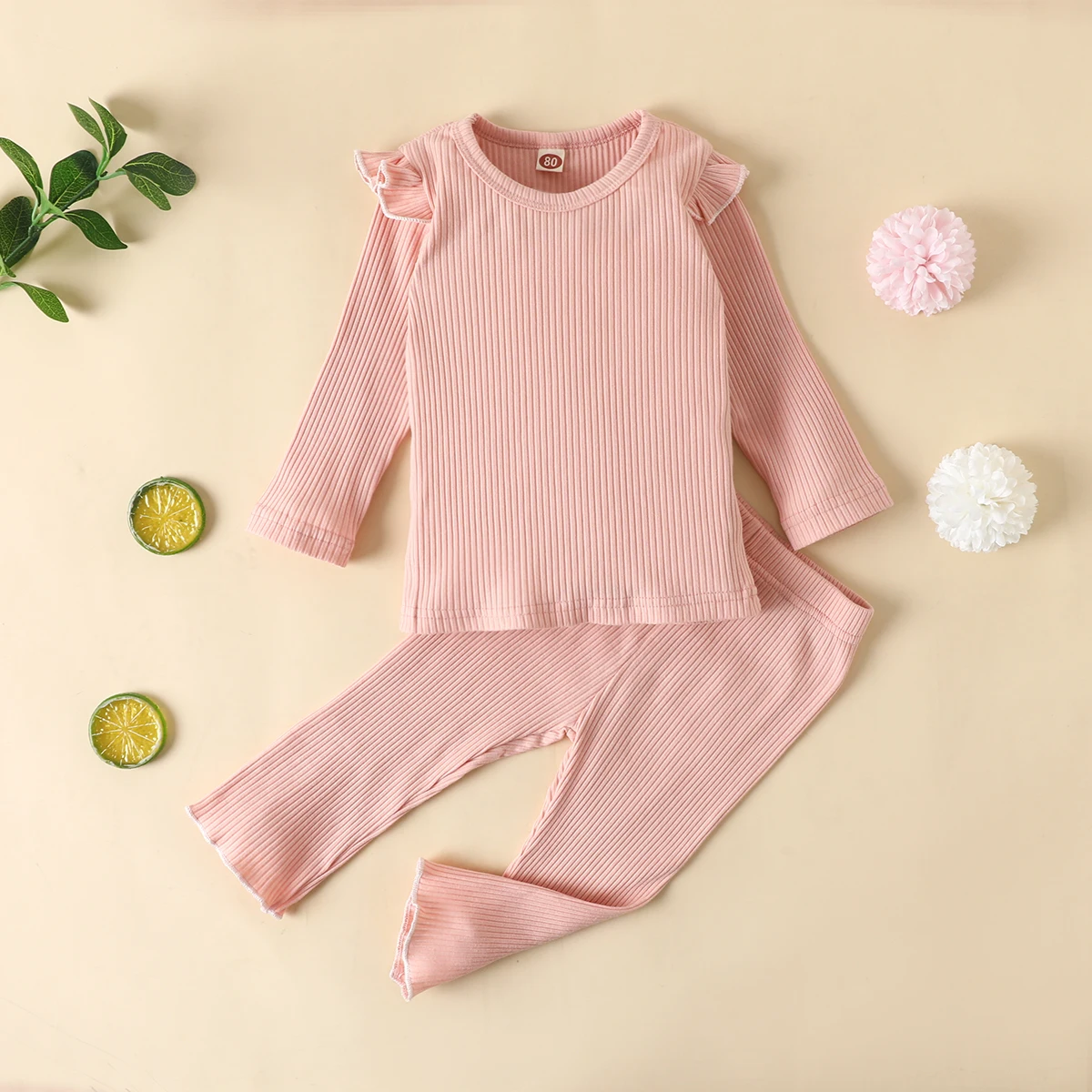 Детская приталенная пижама в рубчик, детский хлопковый комплект из топа и брюк, одежда для сна унисекс для девочек и мальчиков, осенняя одежда для сна с рукавами-лепестками