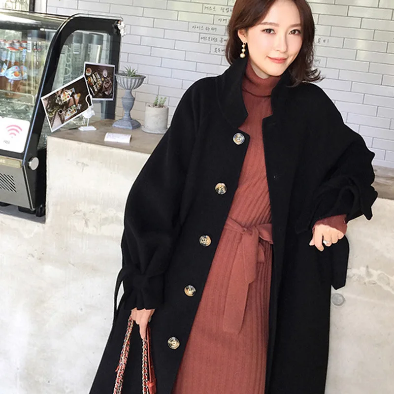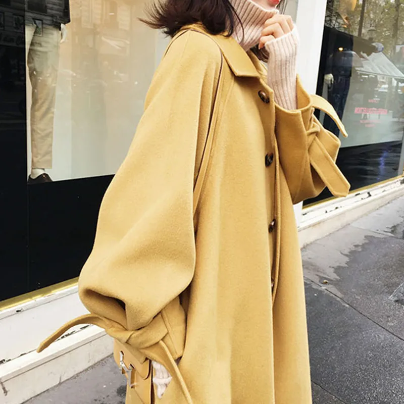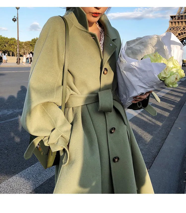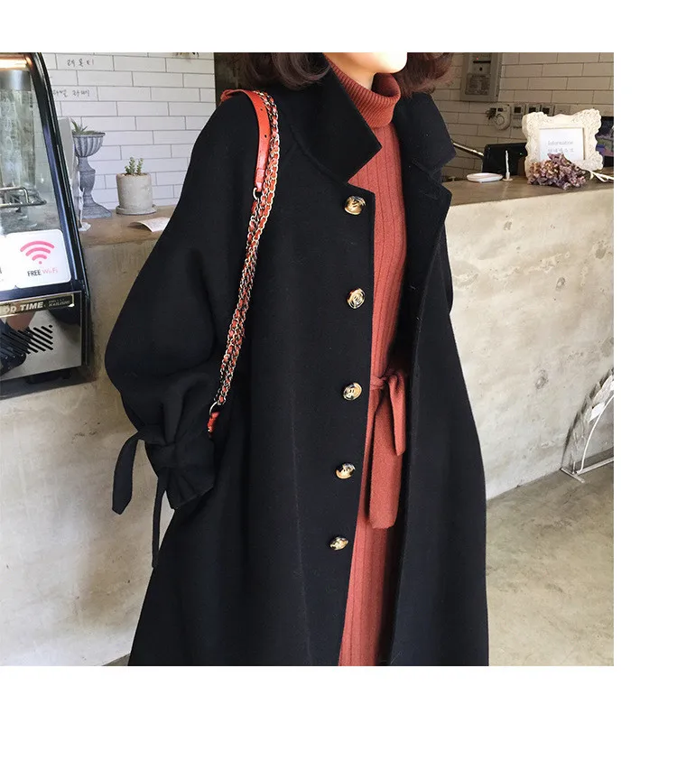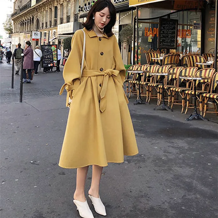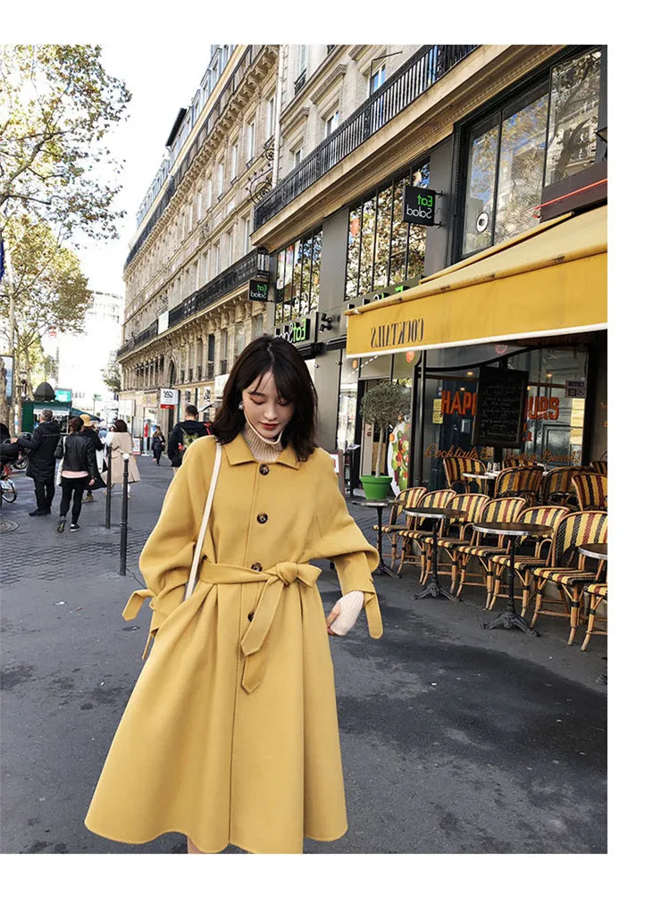 2020 новое зимнее корейское модное женское шерстяное пальто с отложным воротником, однобортное женское длинное шерстяное пальто с поясом и карманами
