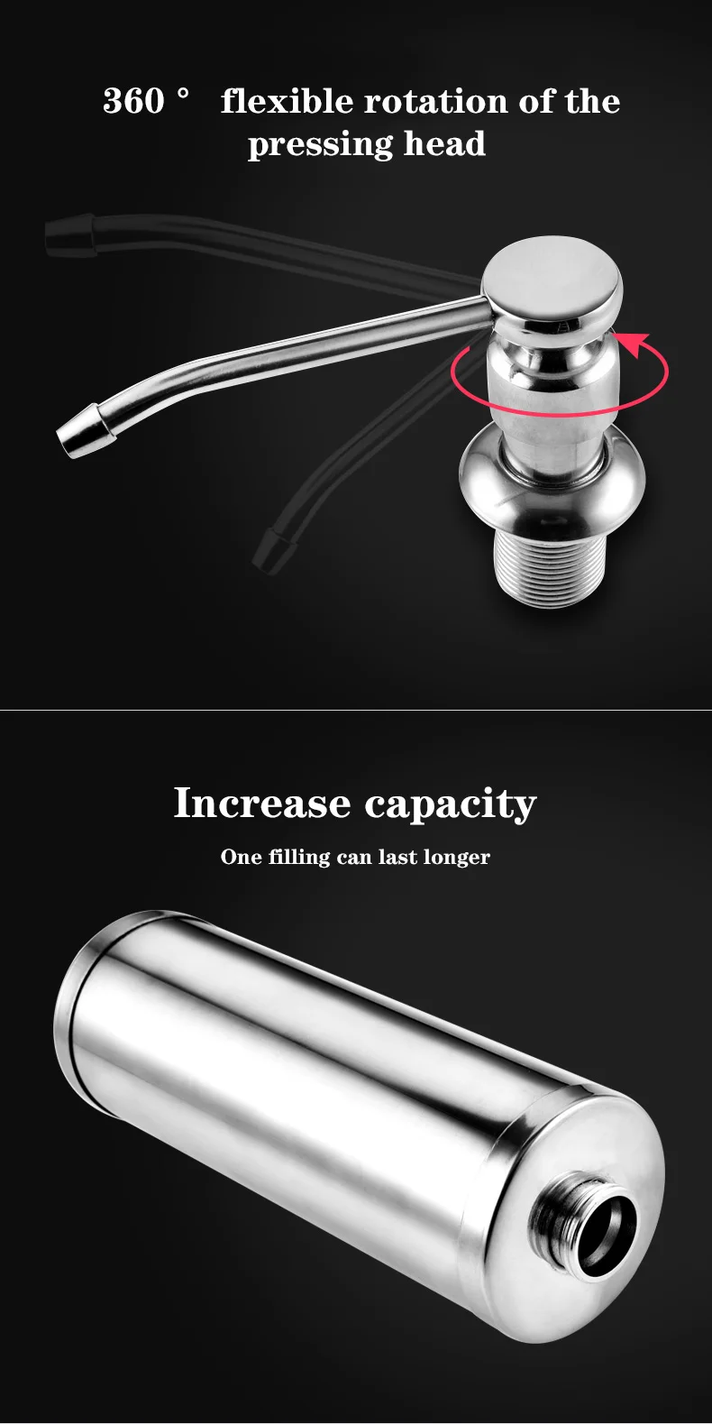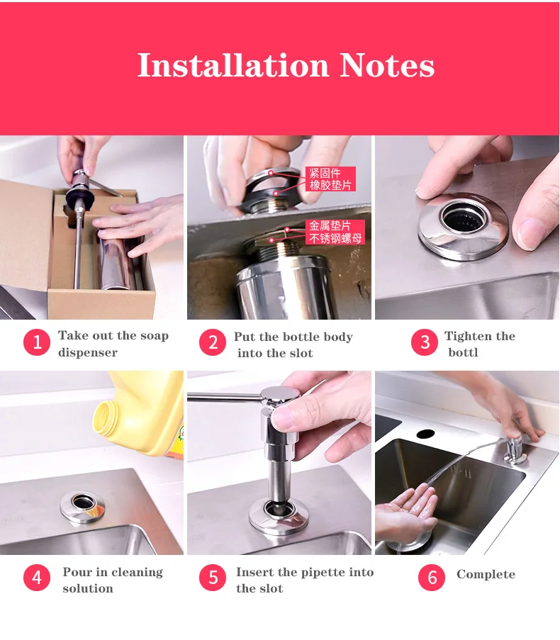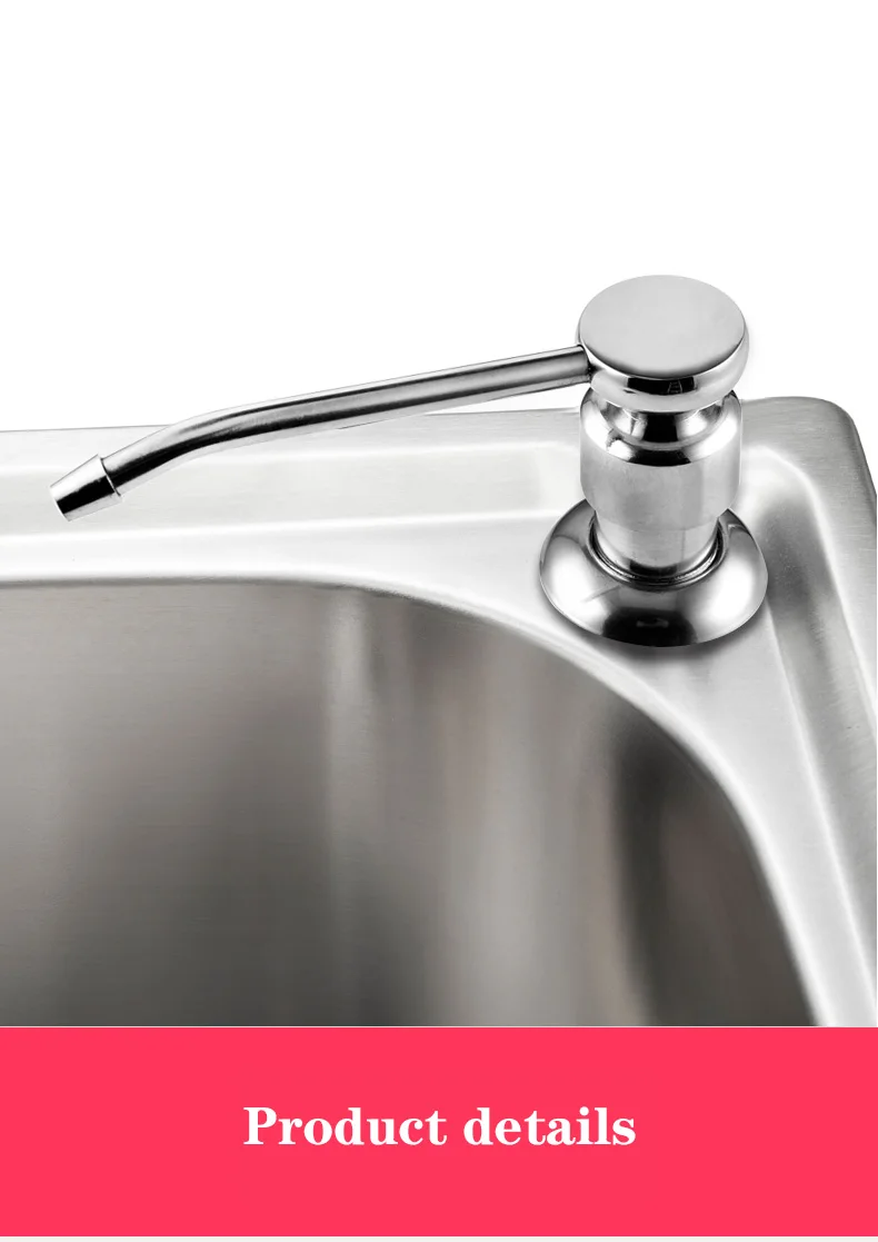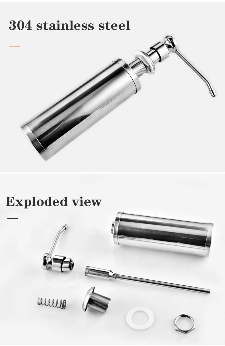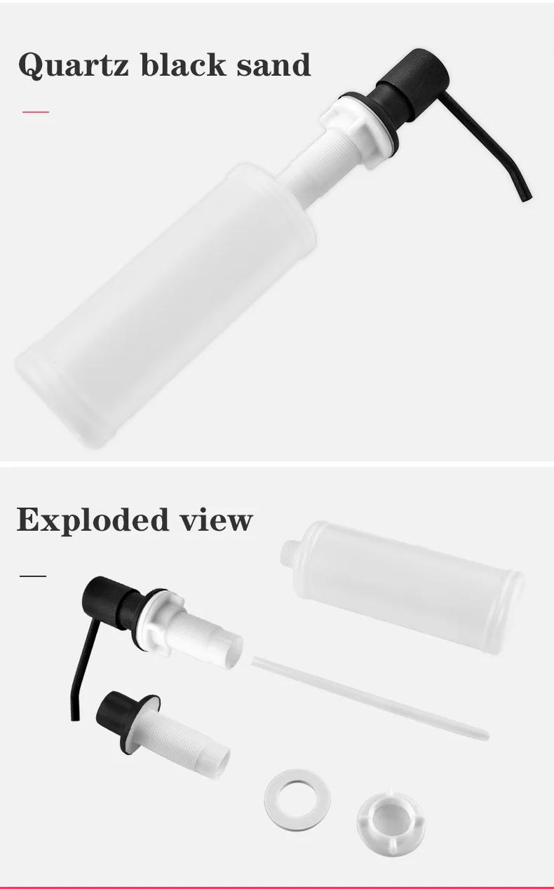 Характеристика: Материал: АБС-пластик для головки и шпильки; Пластиковый насос; ПП бутылка, коррозионная стойкость и стойкость к кислоте Применимый раковина: монтируемый диаметр отверстия (2,5-4,2 см); Монтируемый Толщина (2,6 см) Повторное использование: диспенсер для мойки мыла большой емкости (350 мл) бутылка, длинная насадка, которая достигает над раковиной Простая установка: можно заправить жидким мылом-нужно скорее снять бутылку, это займет всего несколько коротких минут, чтобы установить ее Можно повторно использовать для добавления мыла, дезинфицирующего средства для рук, шампуня, геля для душа, для любой домашней чистки, приготовления пищи