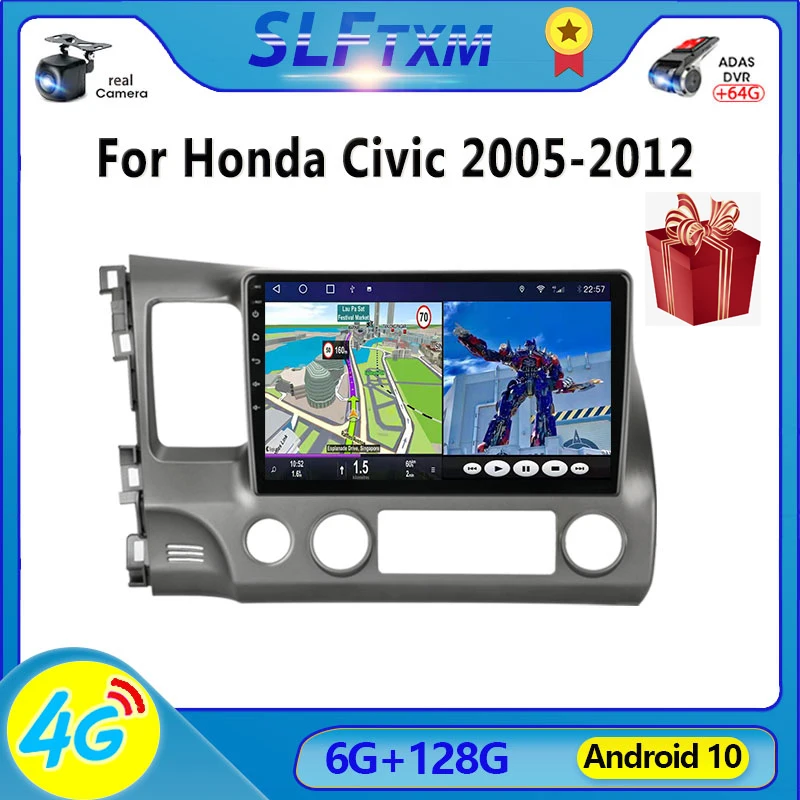 Автомагнитола 2 Din на Android 10, мультимедийный видеоплеер, навигация GPS IPS для Honda Civic 2005, 2006, 2007-2012, 8-ядерный стереоприемник