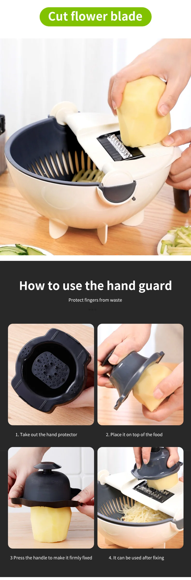 Многофункциональная овощерезка 9 в 1 со сливной корзиной, бытовая к...