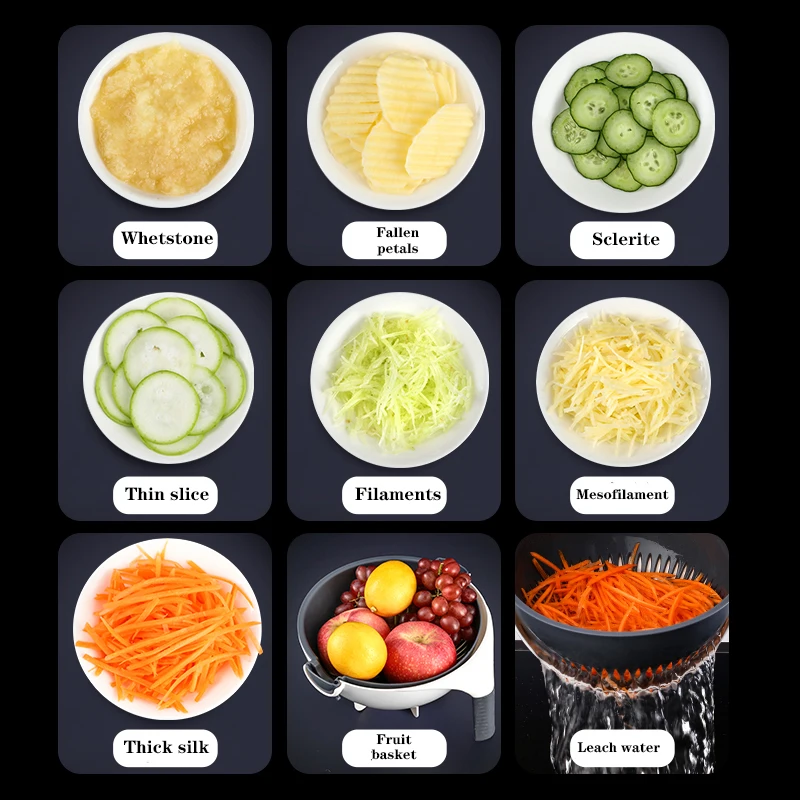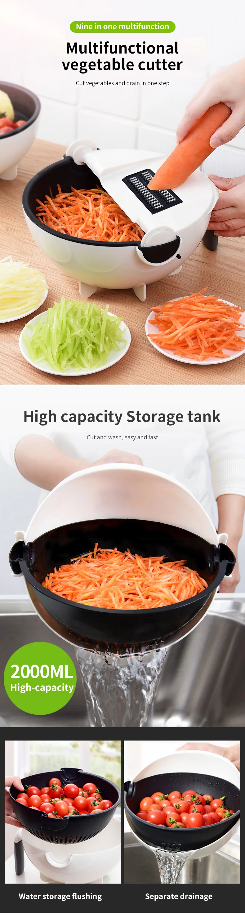 Многофункциональная вращающаяся овощерезка с сливной корзиной, быто...