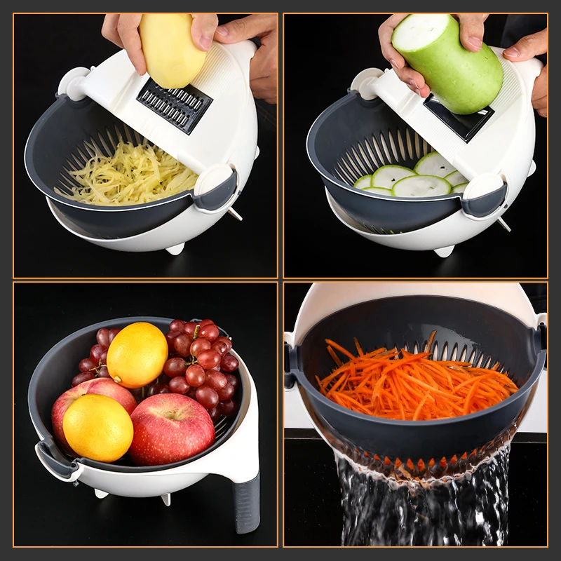 Волшебная многофункциональная вращающаяся овощерезка с сливной корз...