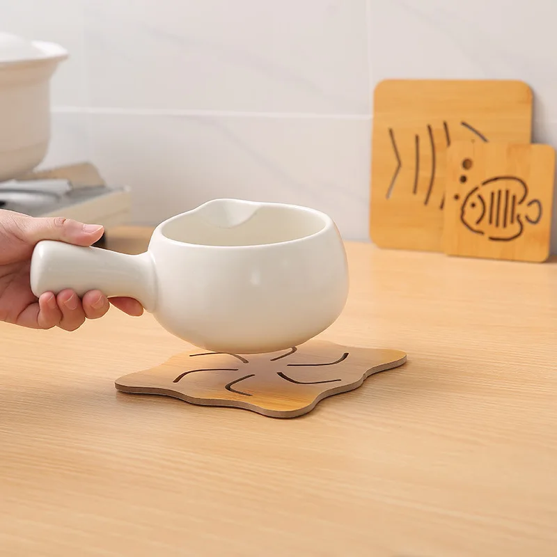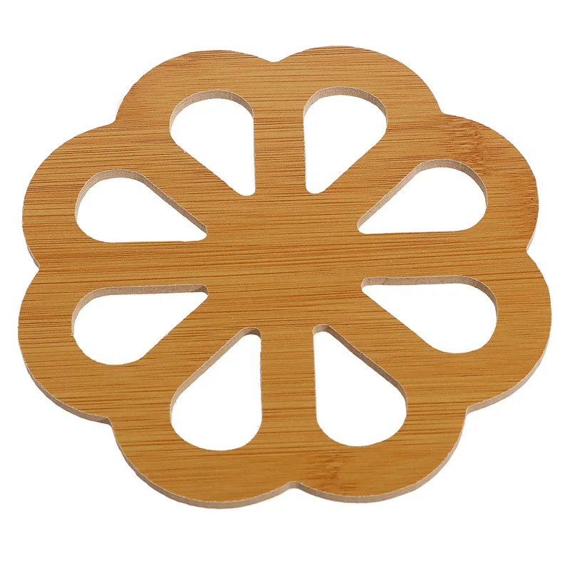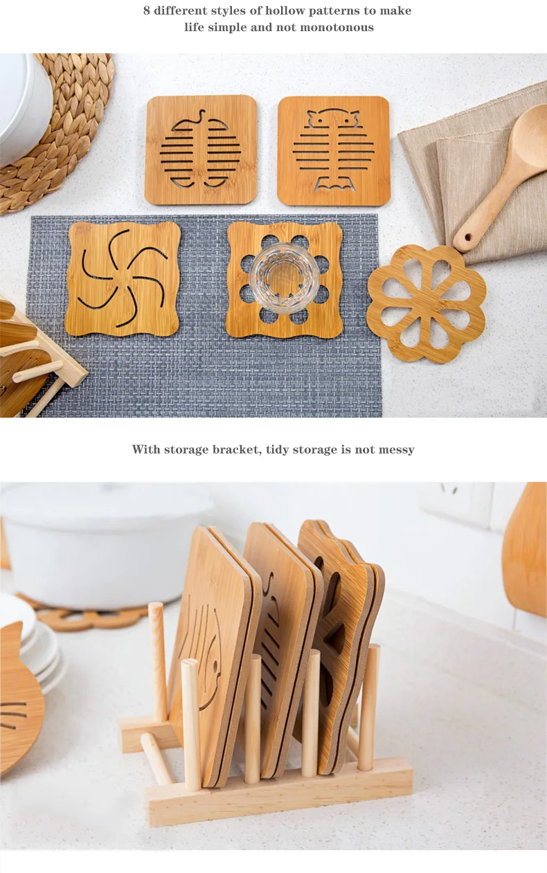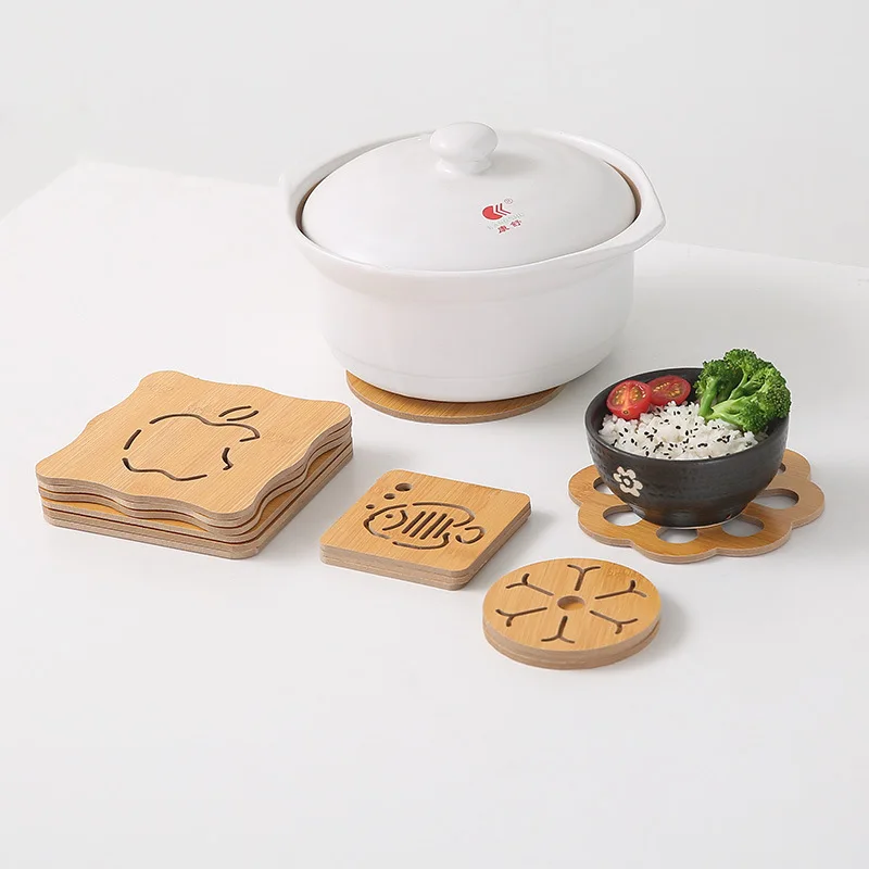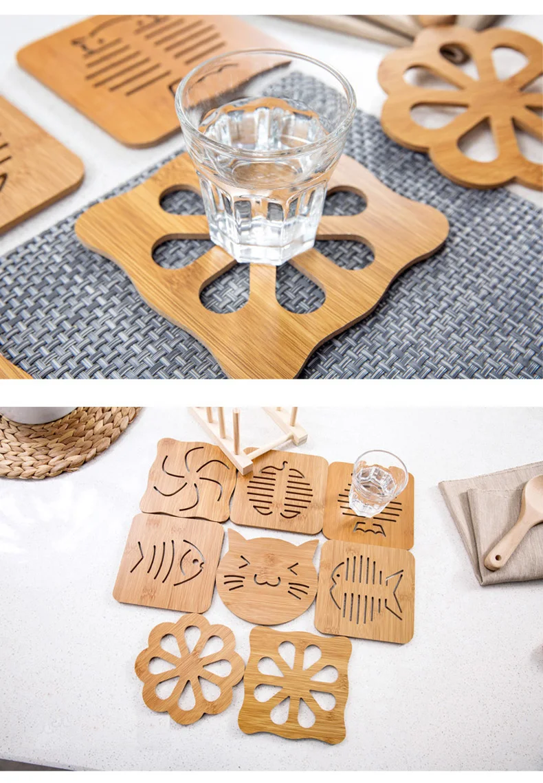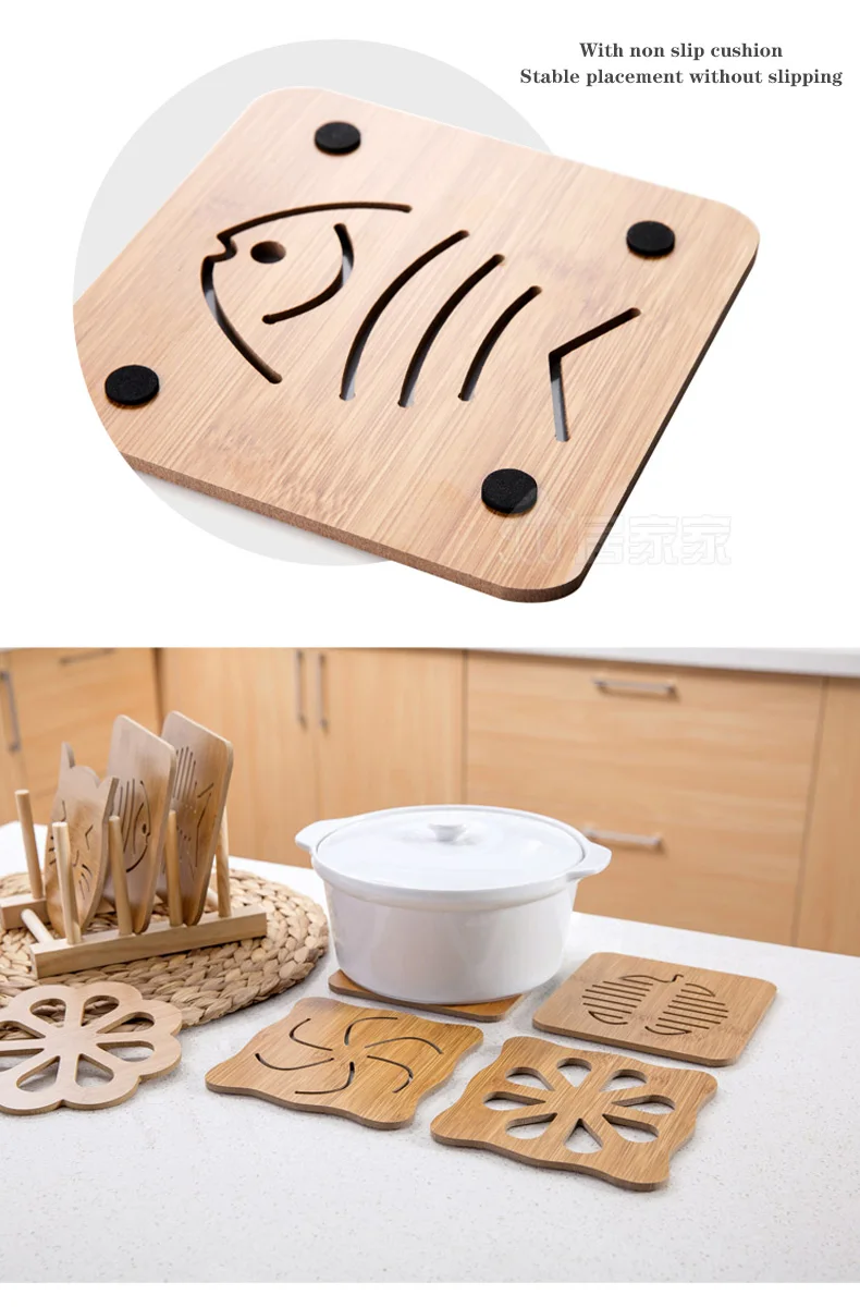 Кухонная бамбуковая полая деревянная подставка, толстая нескользящая мультяшная изоляционная подставка, нескользящая подставка для посуды