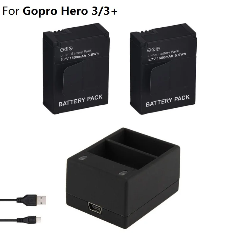 Батарея для Gopro Hero 3, 3,7 в, AHDBT-301, батарея Hero3, двойное зарядное устройство, чехол для аккумуляторов для GOPRO 3 + 302, аксессуары для экшн-камеры