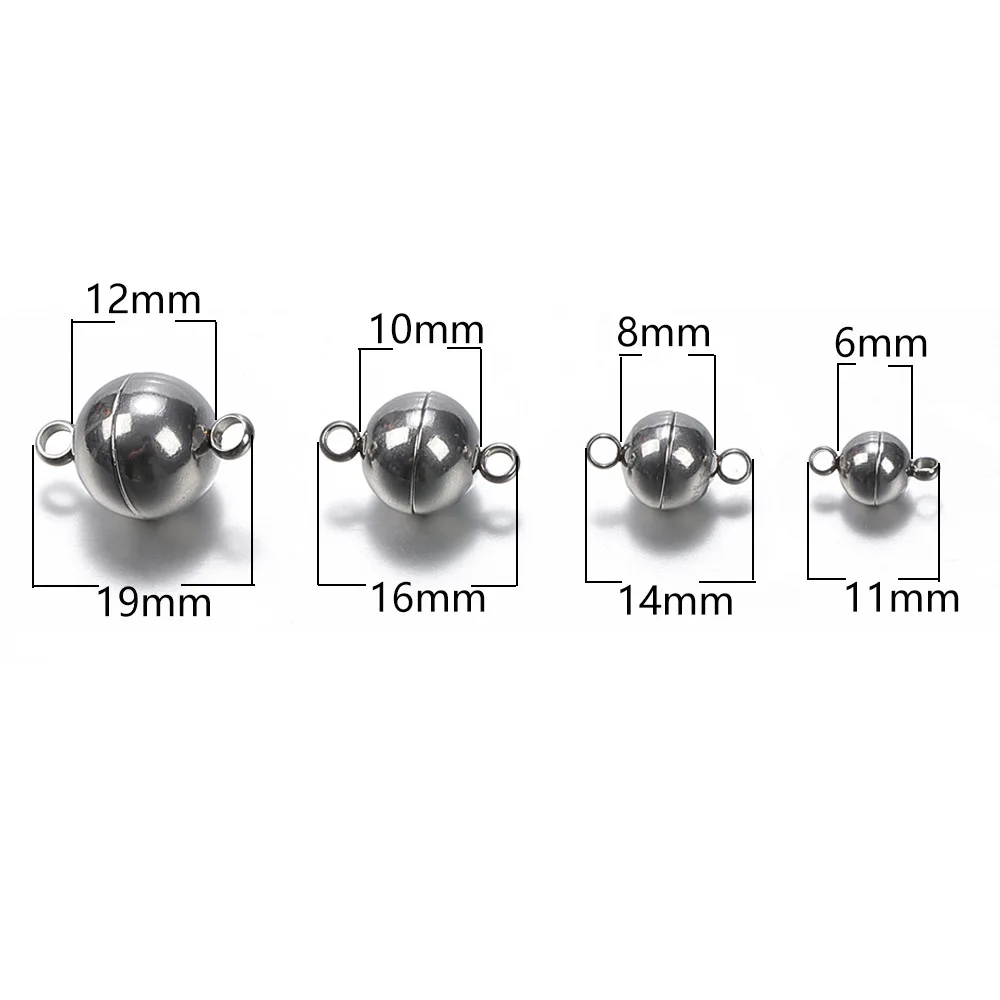 5 комплектов, прочная Магнитная застежка из нержавеющей стали, 6, 8, 10, 12 мм, Круглый шаровой шнур, соединитель браслета для самостоятельного изготовления ювелирных изделий, аксессуары