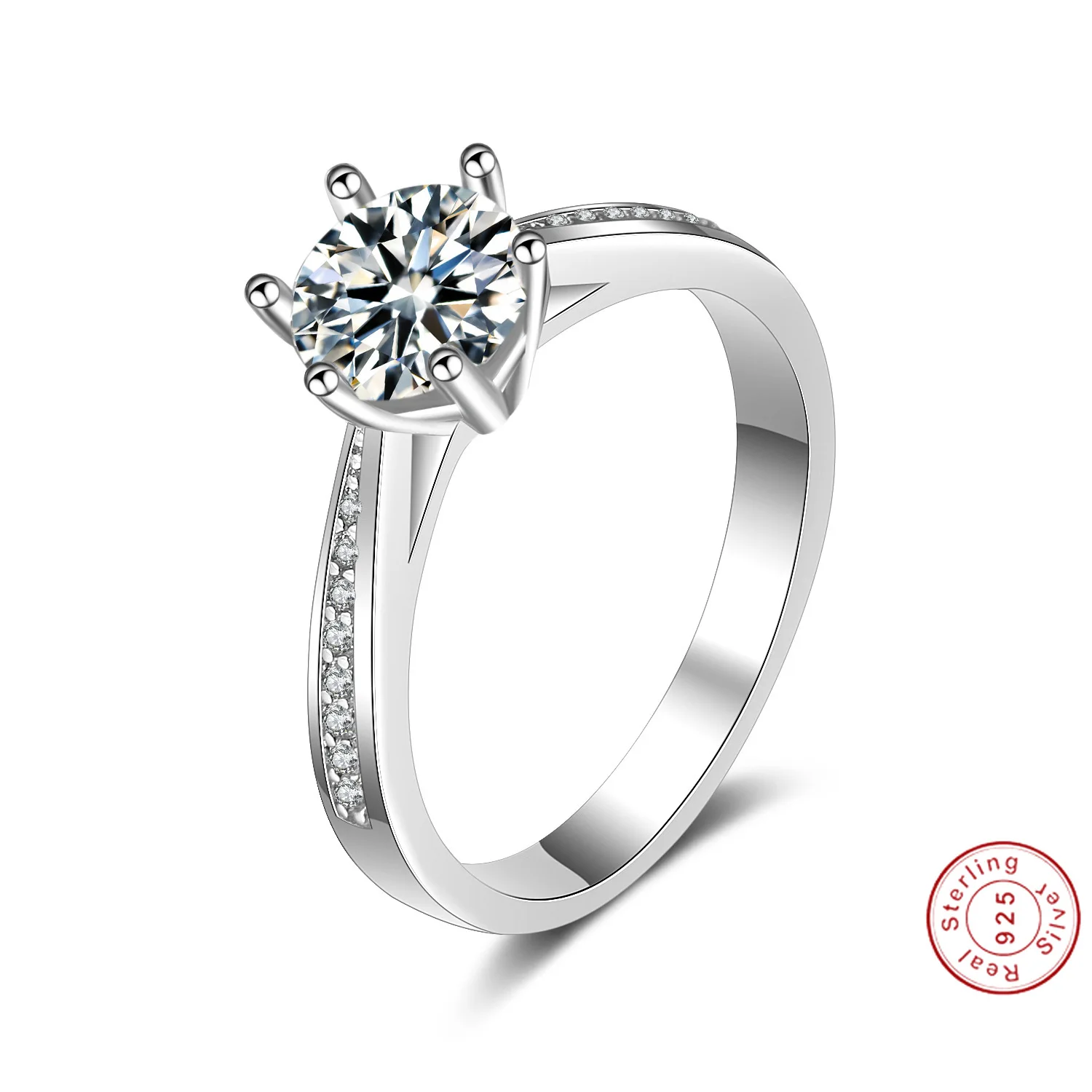 Кольцо женское из серебра 925 пробы, с фианитом, 6 когтей, 1 карат