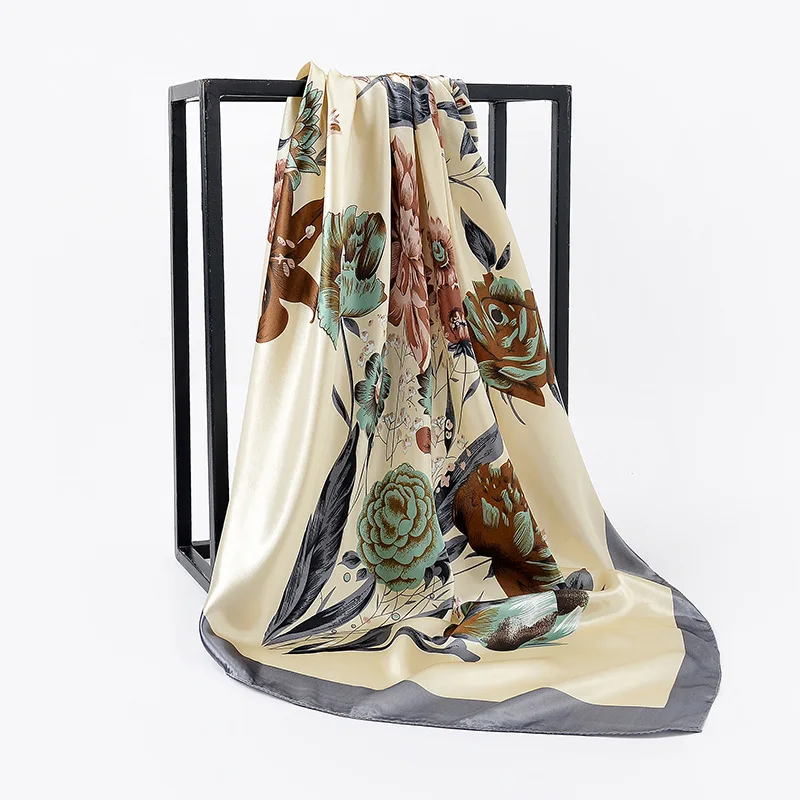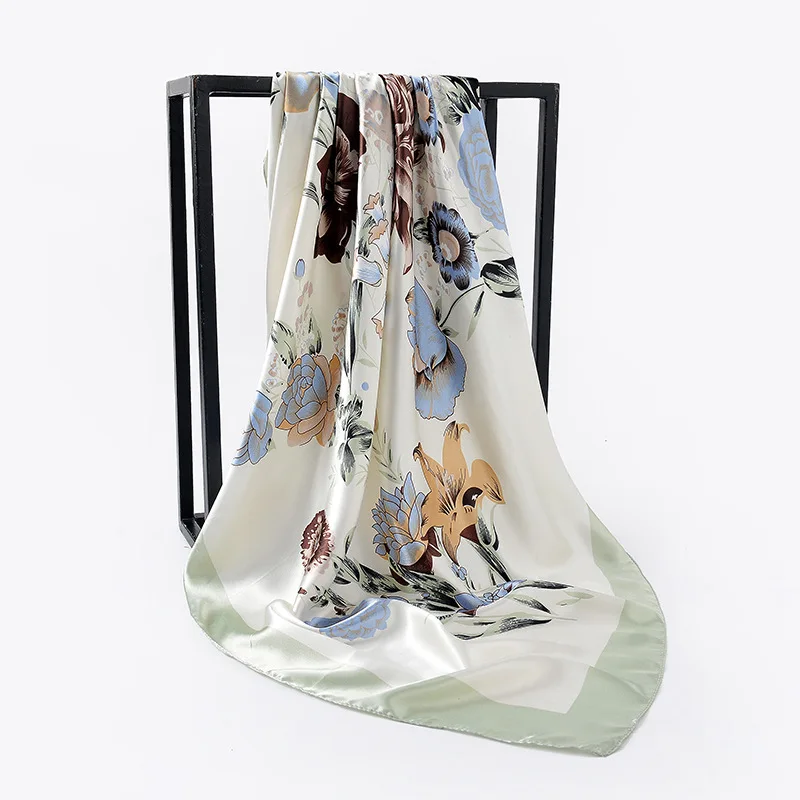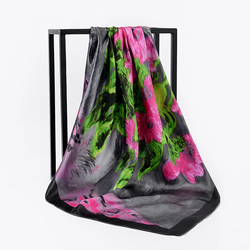 Платок женский Шелковый квадратный, 90 х90 см, с цветочным принтом