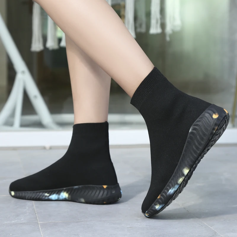 Обувь для женщин; Дышащие сетчатые кроссовки на платформе; Женские слипоны; Мягкая женская повседневная обувь для бега; Вязаные носки; Обувь на плоской подошве; Размер 42