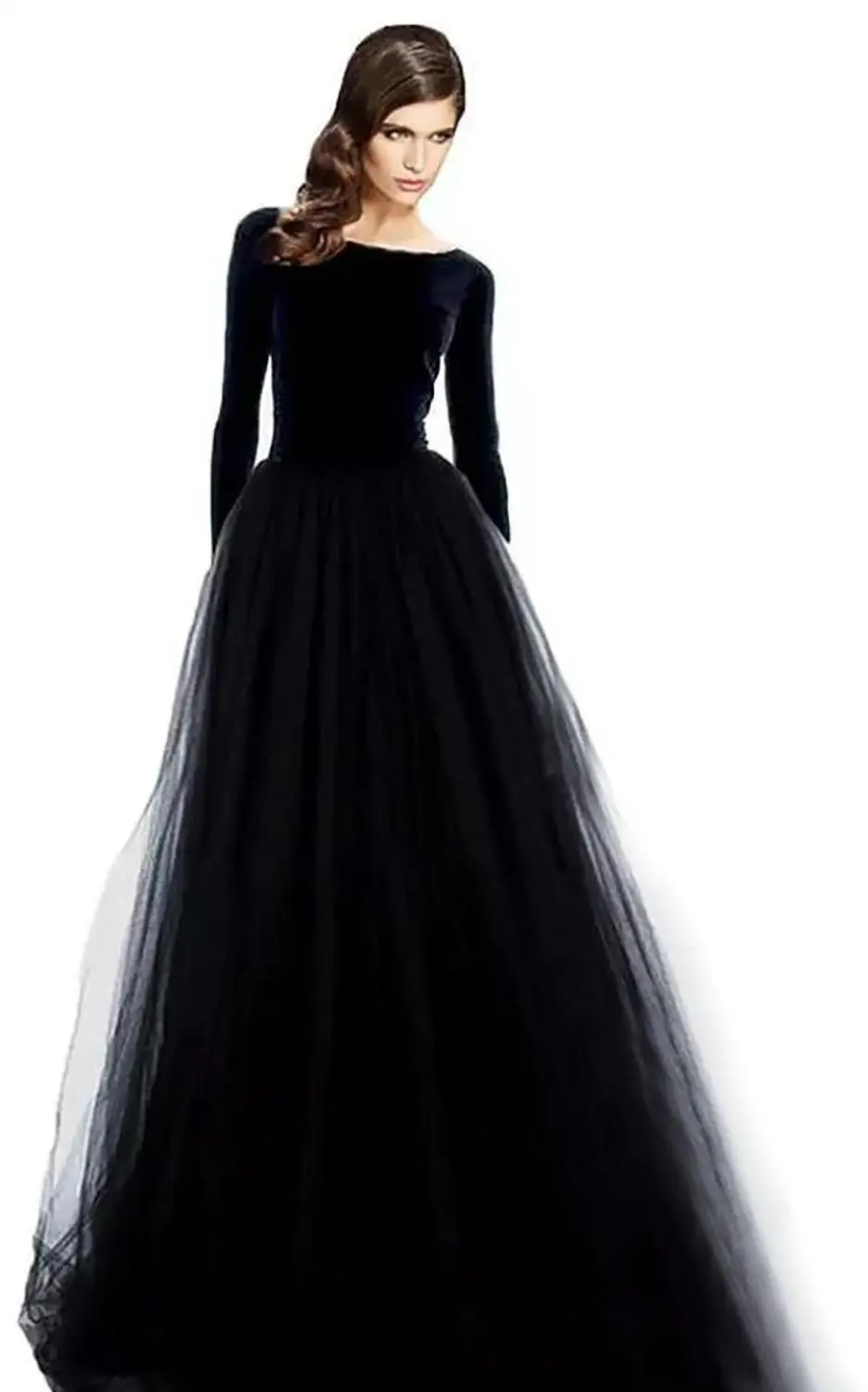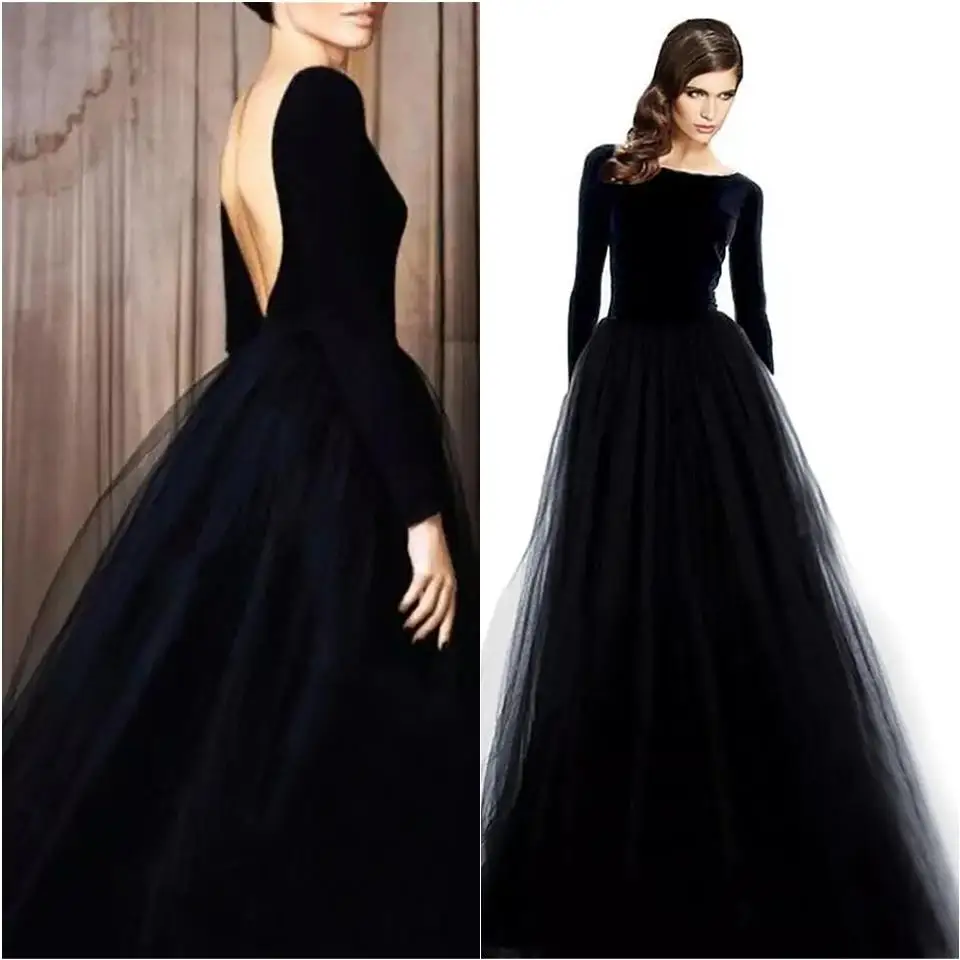 Черные платья а-силуэта для невесты, атласные свадебные платья из тюля с открытой спиной и длинным рукавом на заказ