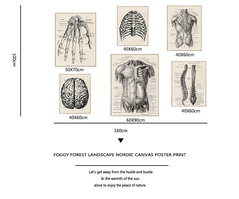 Винтажная картина человеческого искусства медицинская Настенная кар...