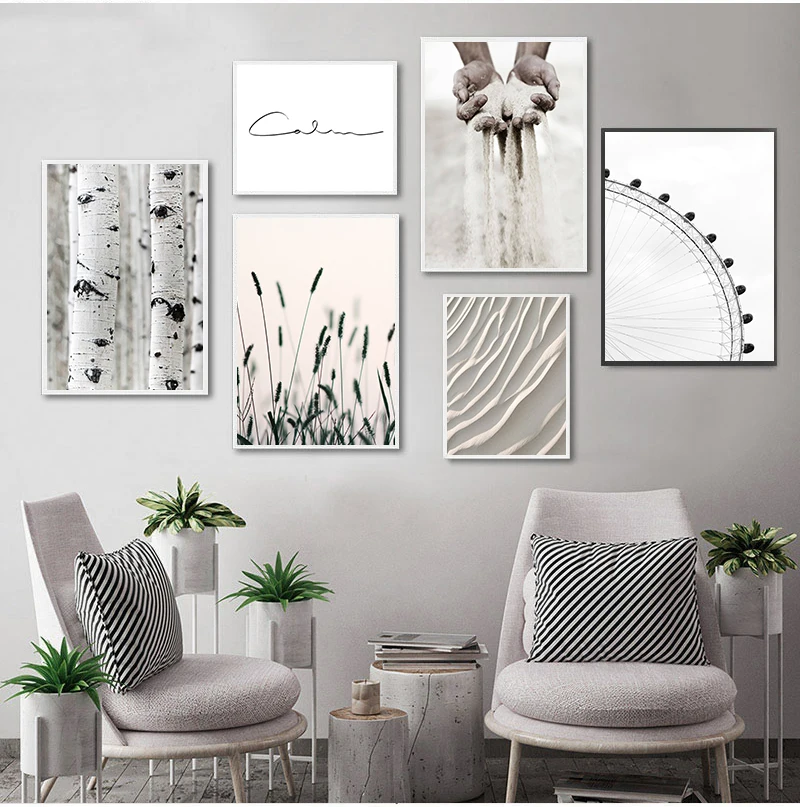 Настенные художественные принты галереи, черно-белая пальма, пейзаж...
