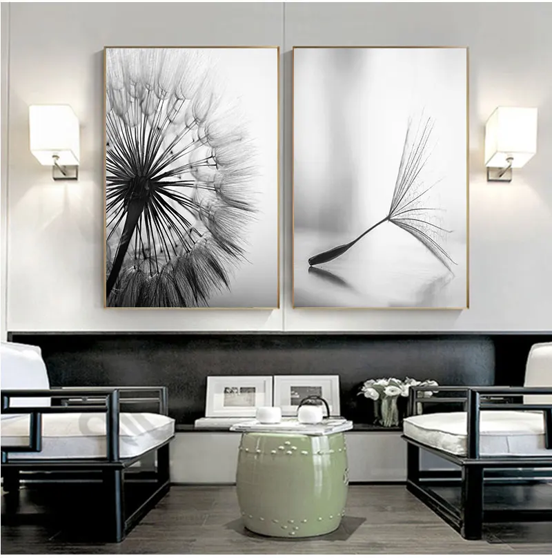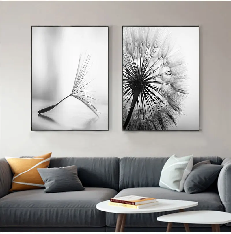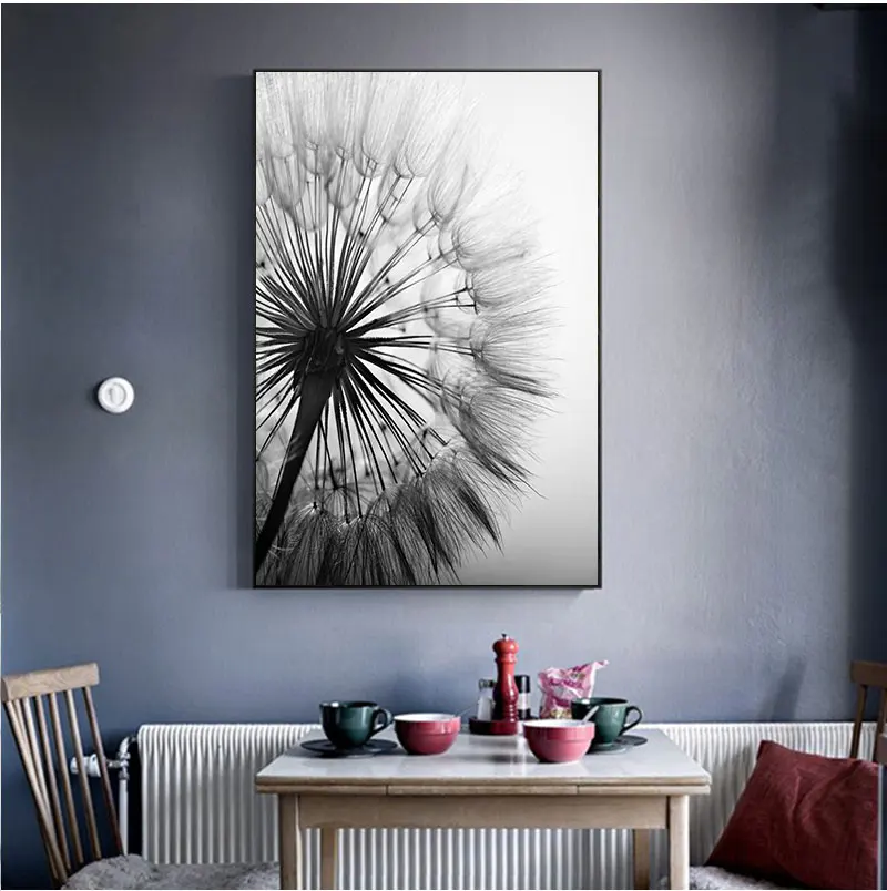 Картина на холсте с цветами одуванчиков, современные черно-белые художественные картины для украшения дома, гостиной, абстрактный настенный постер без рамки