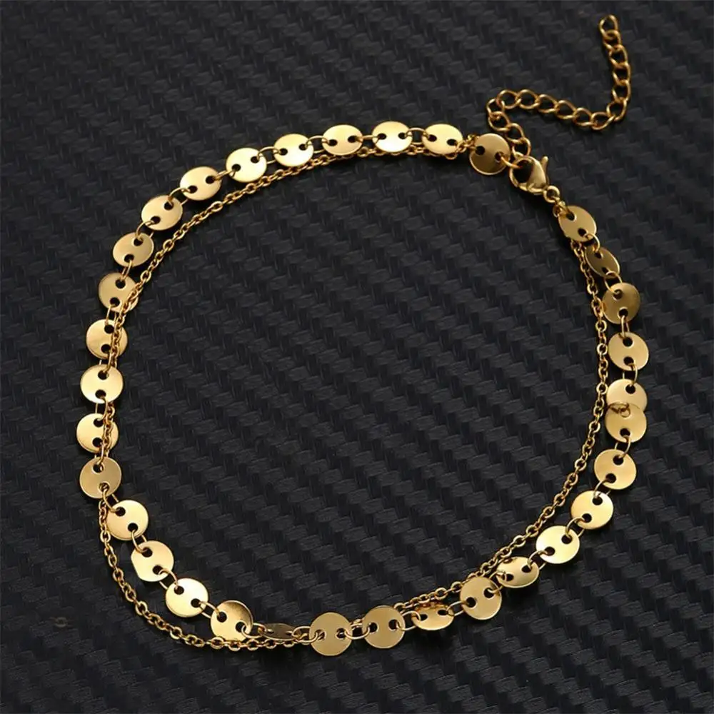 Женский двухслойный ножной браслет из нержавеющей стали, дизайнерский браслет на ногу с монеткой в форме сердца и блестками, Подарочные ювелирные изделия