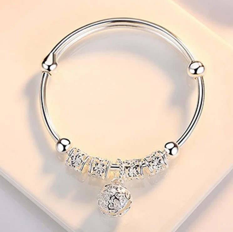 Женские браслеты из серебра 925 пробы, с колокольчиками и шариками