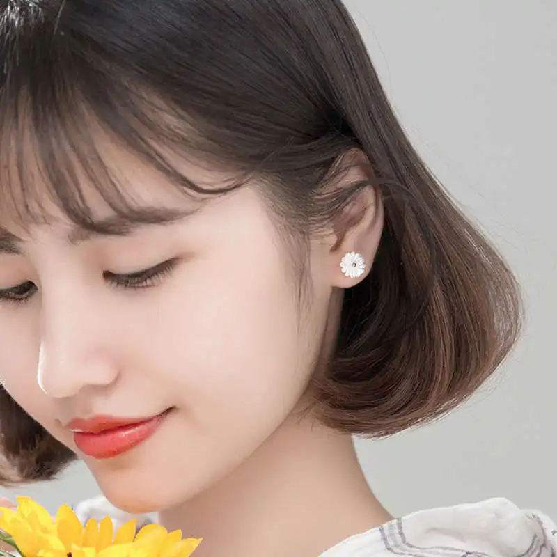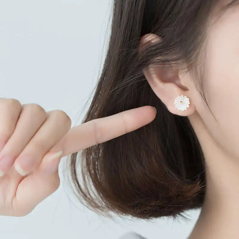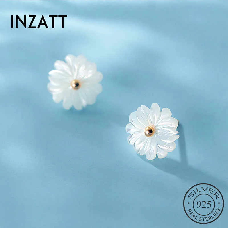 INZATT, Настоящее серебро 925 пробы, серьги-гвоздики с белым цветком, Модные женские ювелирные украшения, Богемные аксессуары, подарок