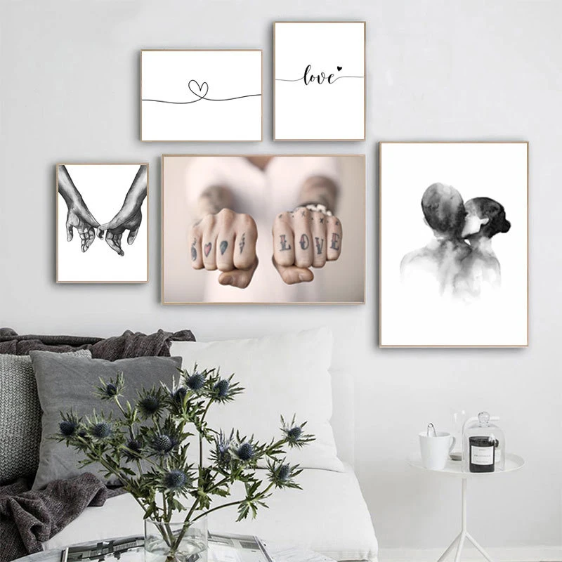 Картина на холсте с поцелуем в плечо, черно-белая, минималистская, для декора гостиной, картина с цитатами
