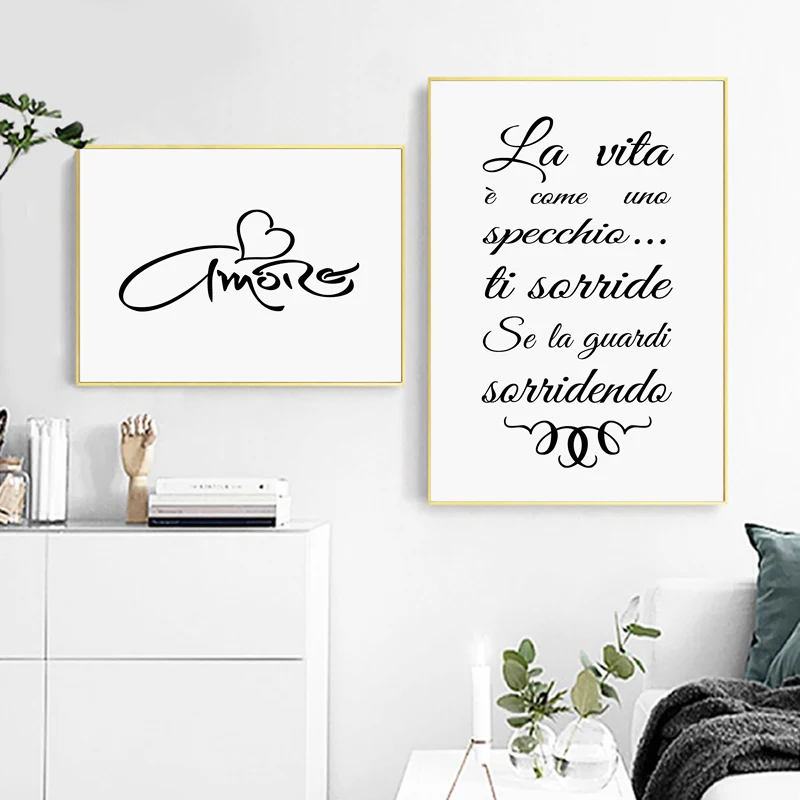 Картина на стену с мотивом итальянского любовного сердца, Картина на холсте с мотивами итальянской вдохновляющей жизни и постером, декор для домашней комнаты